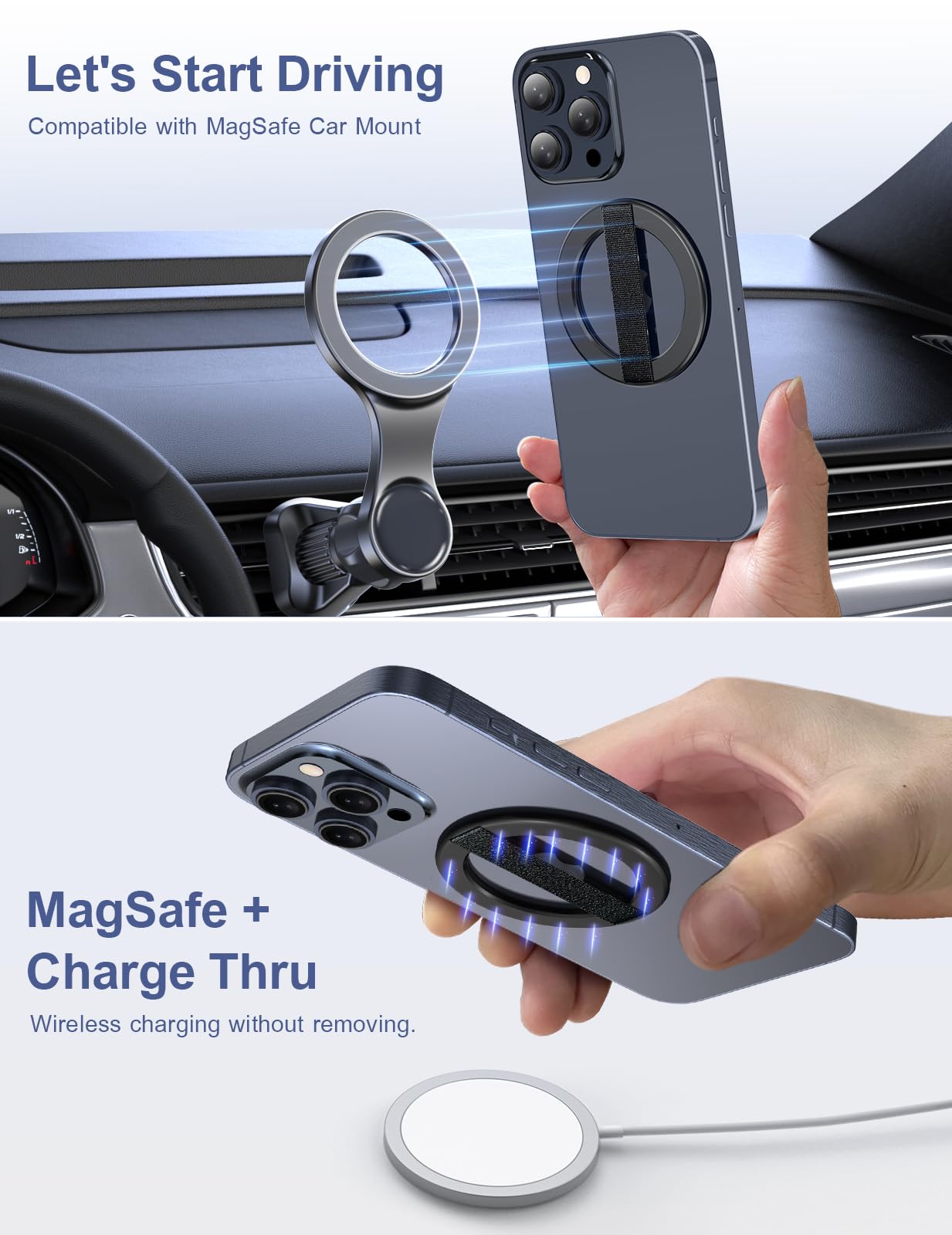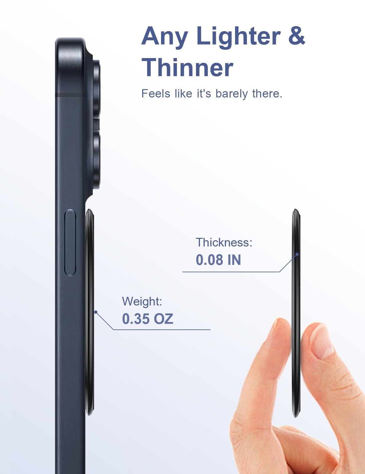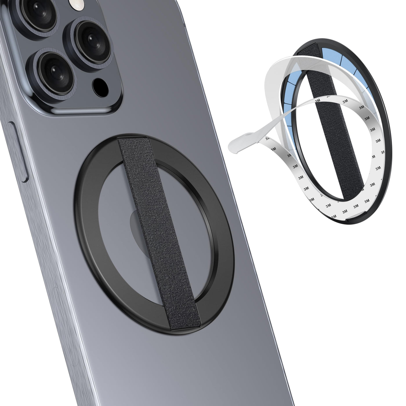 Kahite Airloop Ultra Thin Phone Grip With Soft Elastic Finger Strap, Strong Adhesive With Back-Sided Magnetic Ring Holder Loop, Ultra Light Accessories For Phone-Black