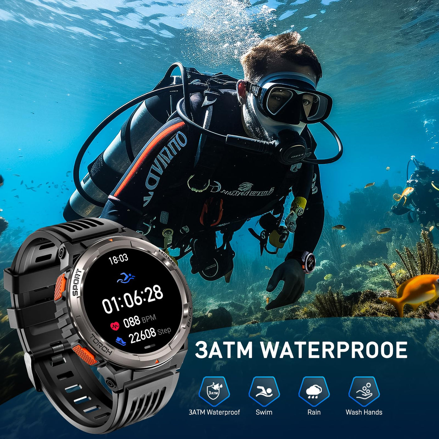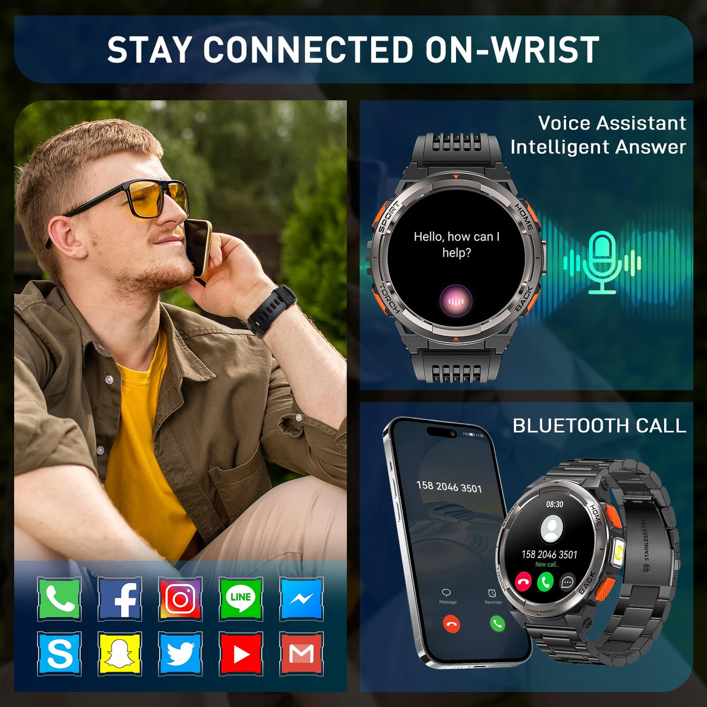 Leuceira Military Smart Watches For Men With Led Flashlight, Tactical Rugged Smart Watch With 1.45 Hd, 3Atm Waterproof & Compass