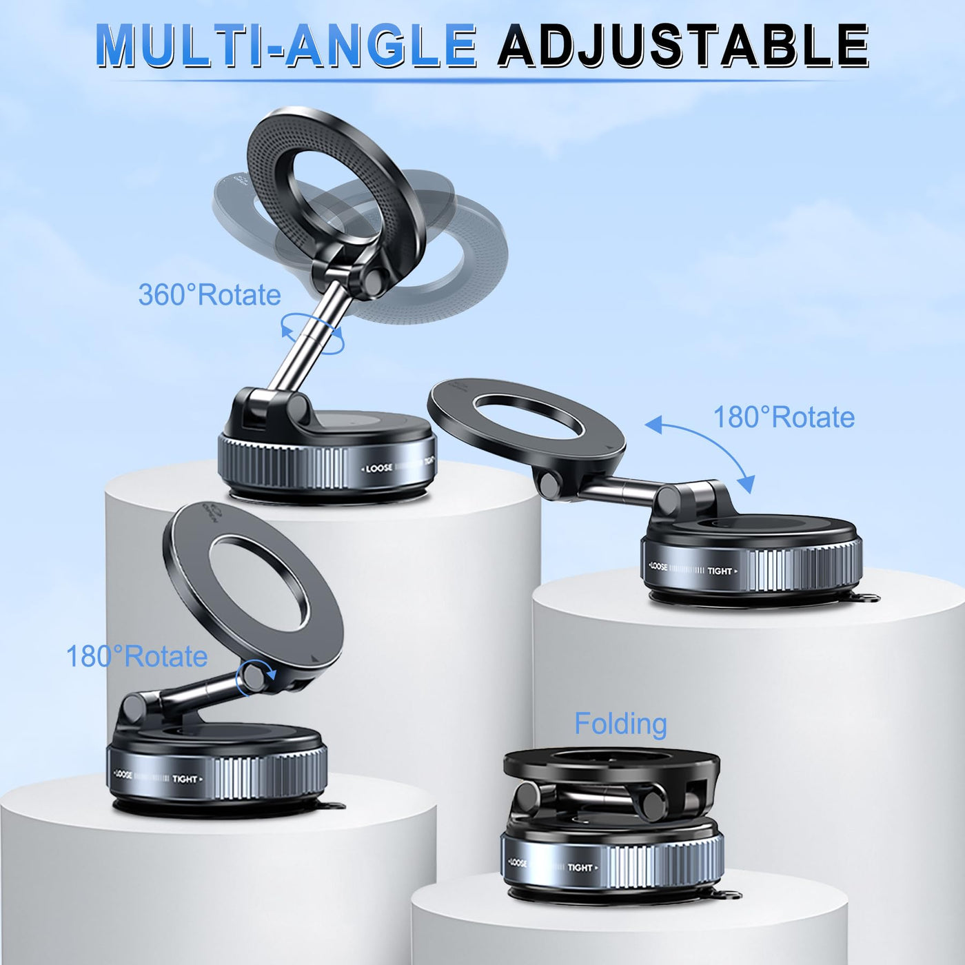 Livtee Upgraded Vacuum Magnetic Phone Holder, 360 Rotating Suction Cup Magnetic Mount Stand Compatible With Iphone & Android, Fi