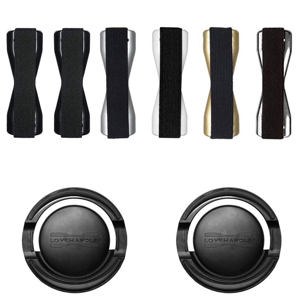 Lovehandle Grip For Smartphone And Mini Tablet With Lovehandle 360 Mount, Black Elastic Strap Wih Solid Colored Base, 6 Grip And