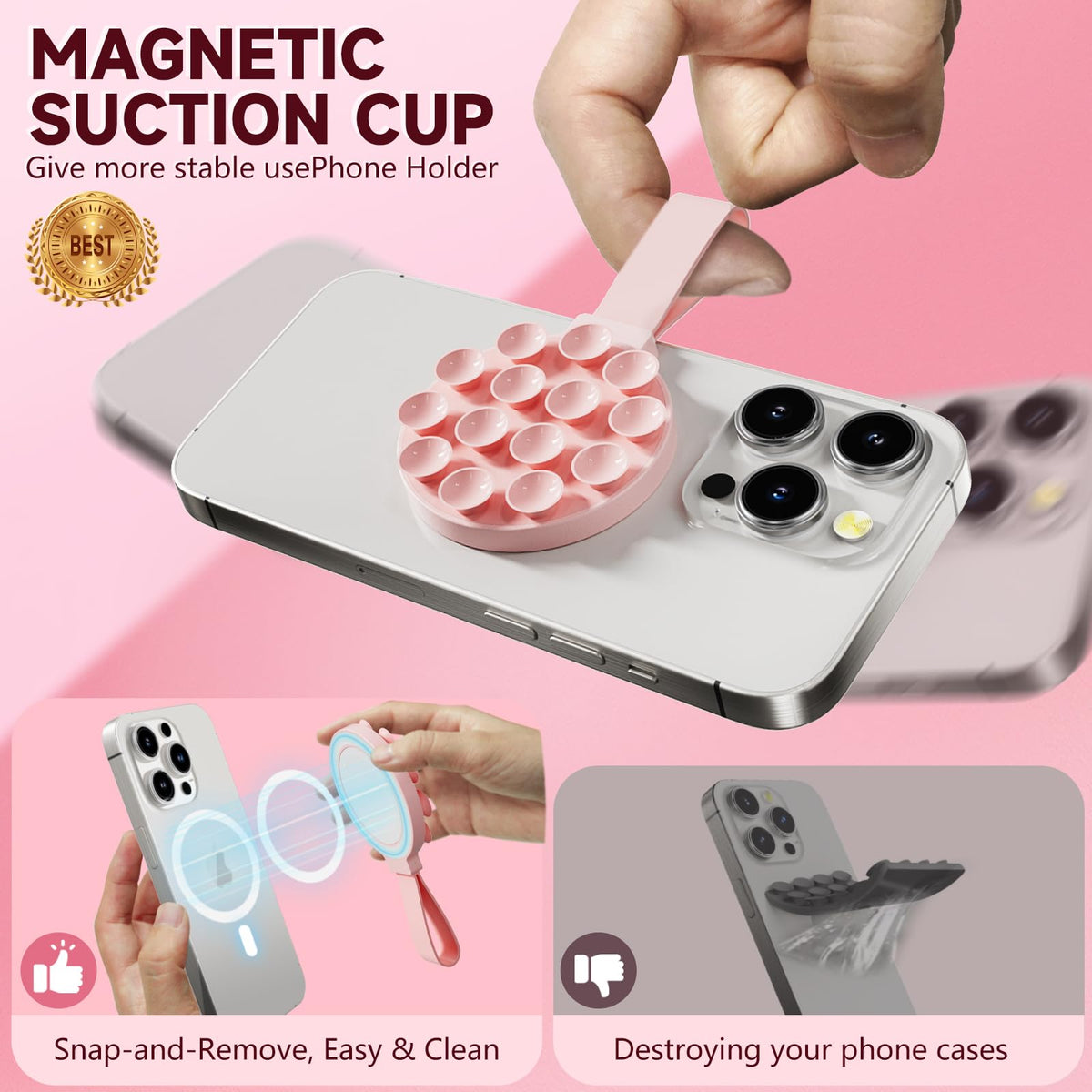 Magnetic Suction Phone Mount For Magsafe Case,Iphone Sticky Grip Compatible With Magsafe,Strong Grip Holder For Selfies & Videos