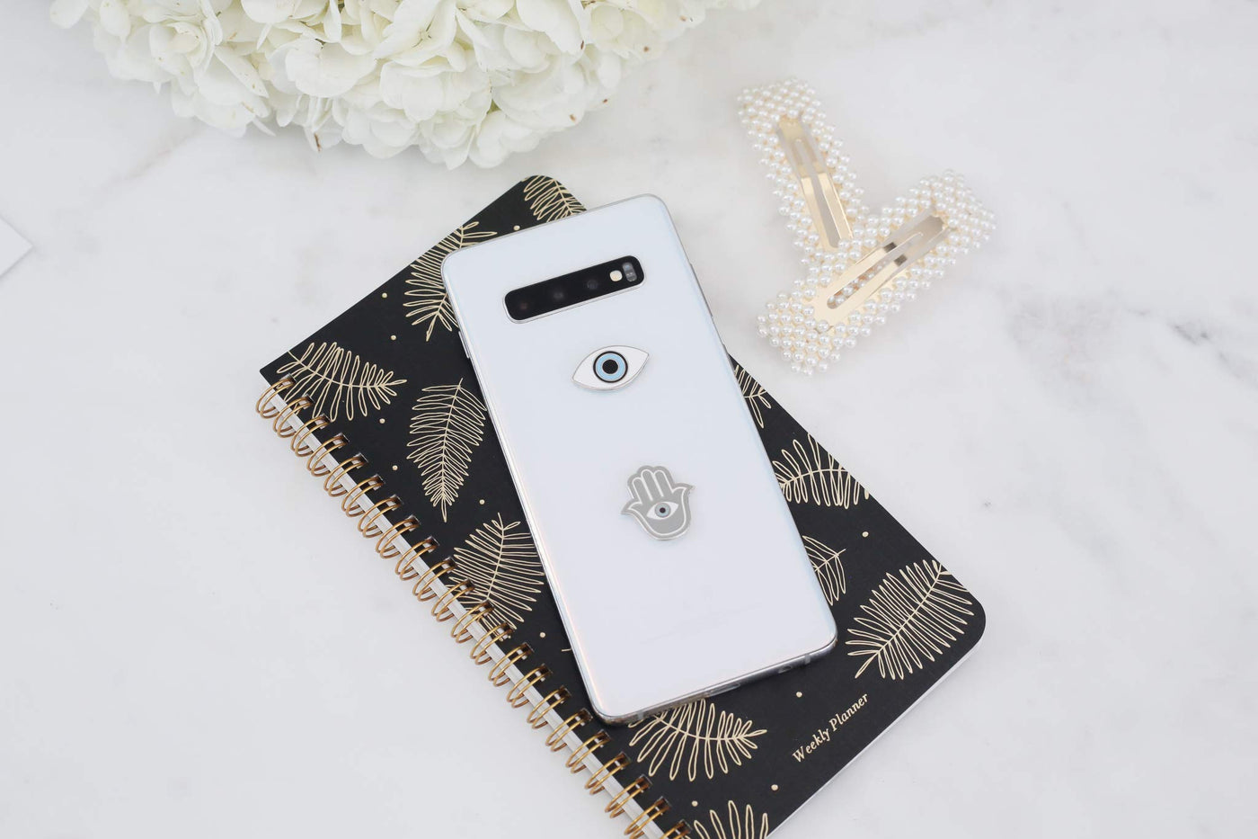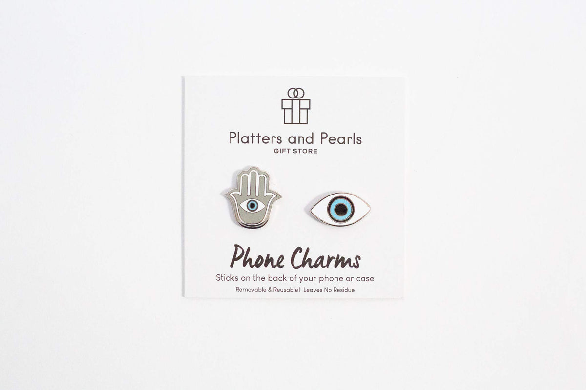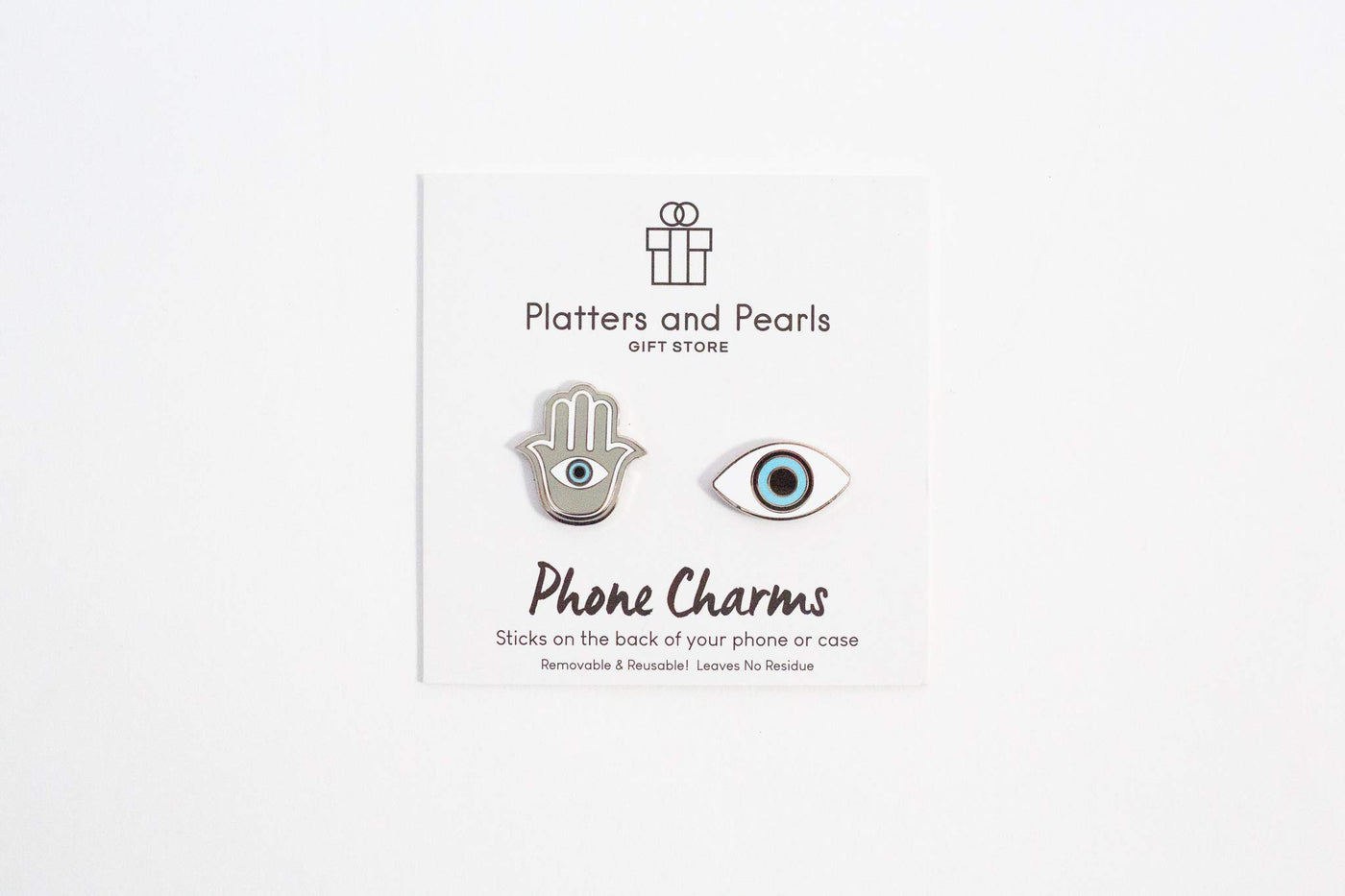 Metal Charm Stickers For Cell Phone Cases. Evil Eye And Hamsa Set Of 2 Reusable & Removable Leaves No Residue. Universal Spiritu