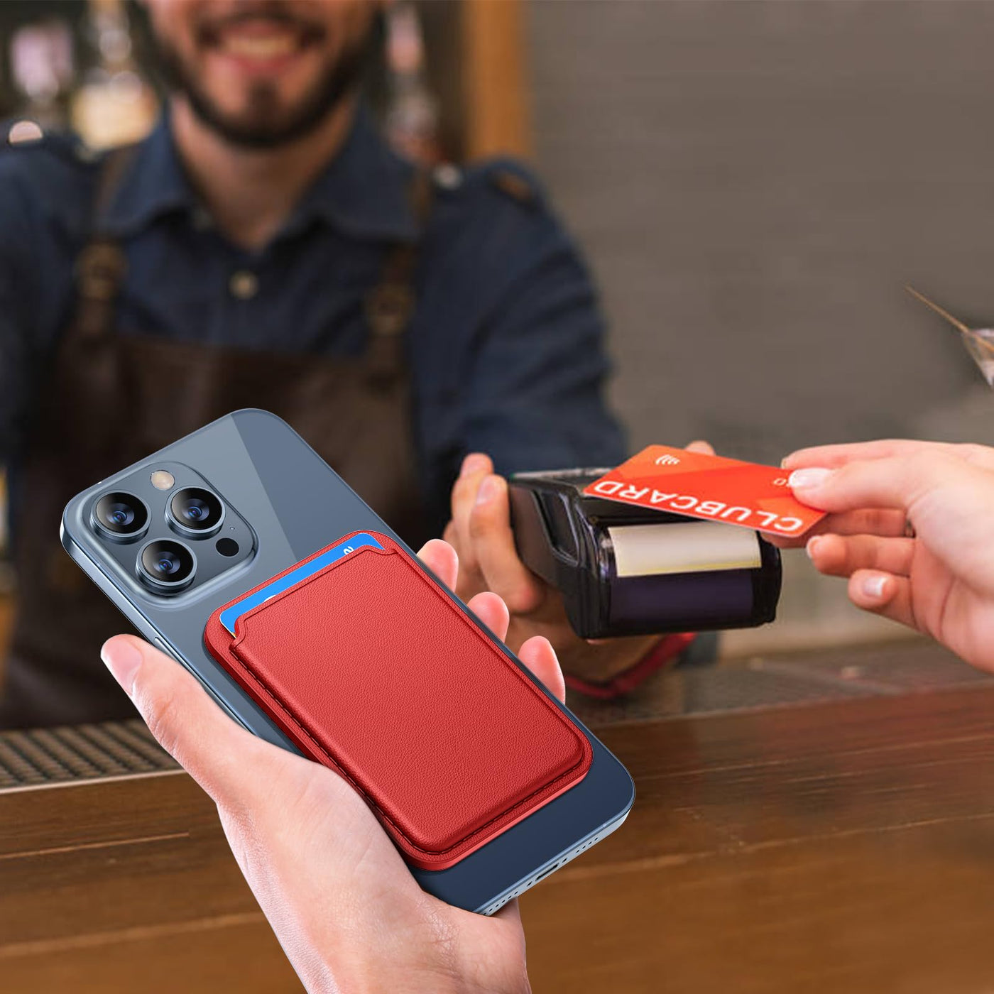Q: How does the magnetic attachment work with my iPhone?A: The wallet features 12 powerful built-in magnets that allow it to snap securely onto the back of your iPhone, ensuring a strong connection and easy access to your cards.