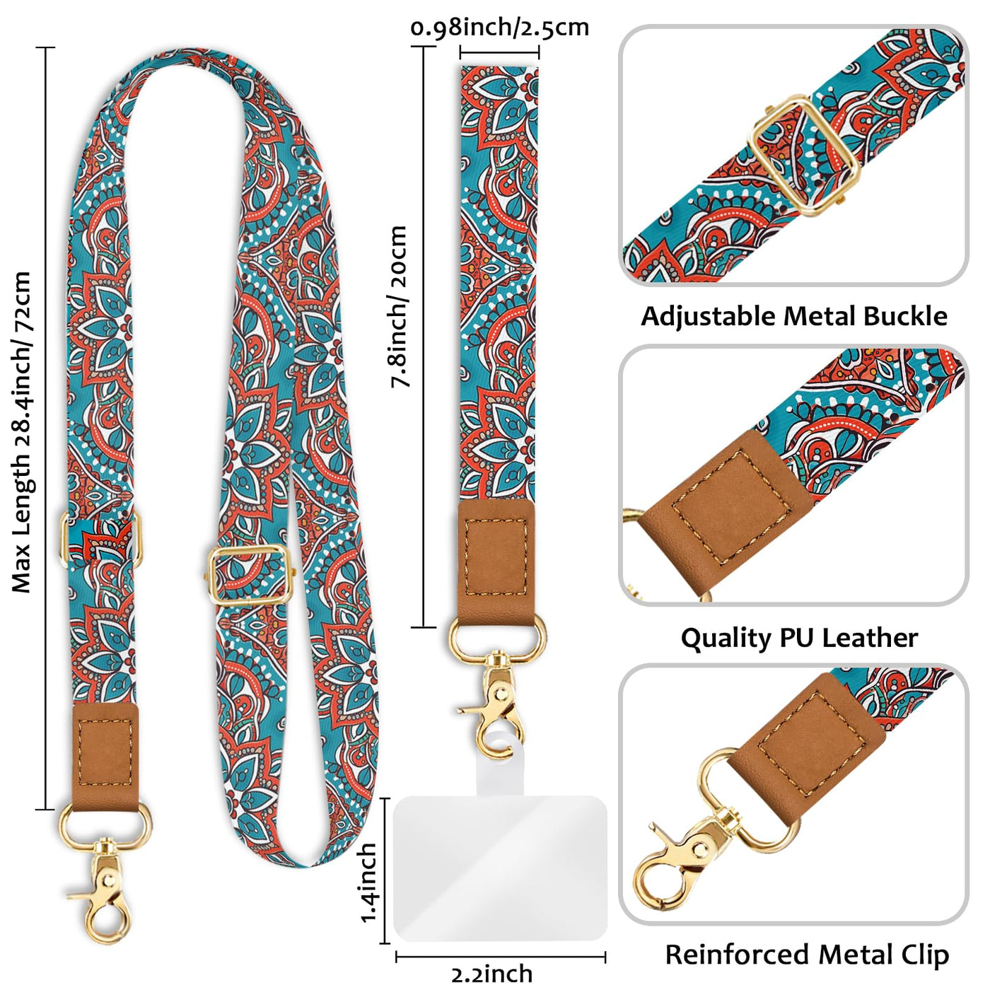 Piefly Phone Lanyard Crossbody Wrist Strap, Boho Bohemain Cell Phone Lanyards For Around The Neck Wristlet Shoulder, Adjustable Phone Strap For Car Keys Keychain Wallet Phone Case Id Badge