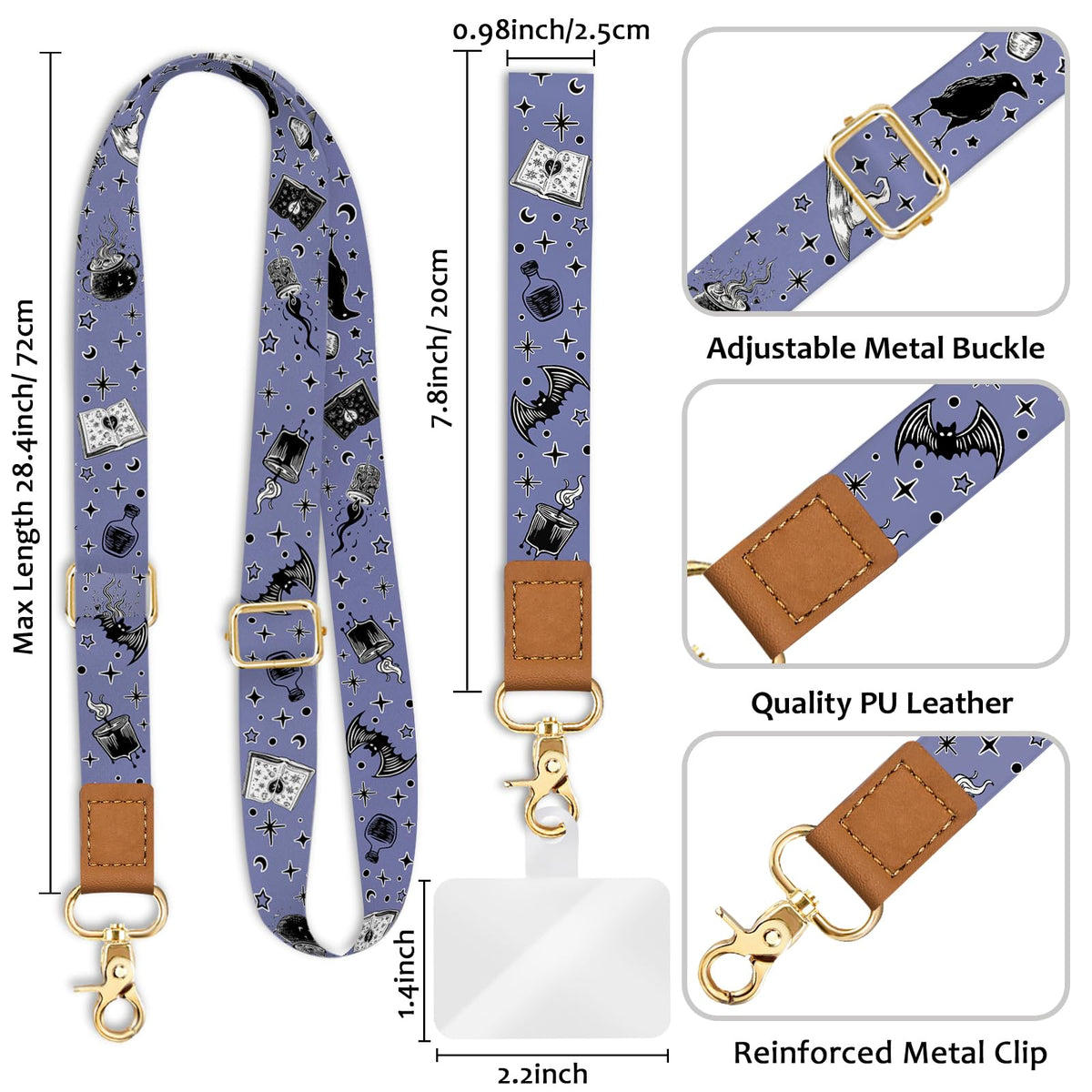 Piefly Phone Lanyard Crossbody Wrist Strap, Goth Magic Cell Phone Lanyards For Around The Neck Wristlet Shoulder, Adjustable Cut