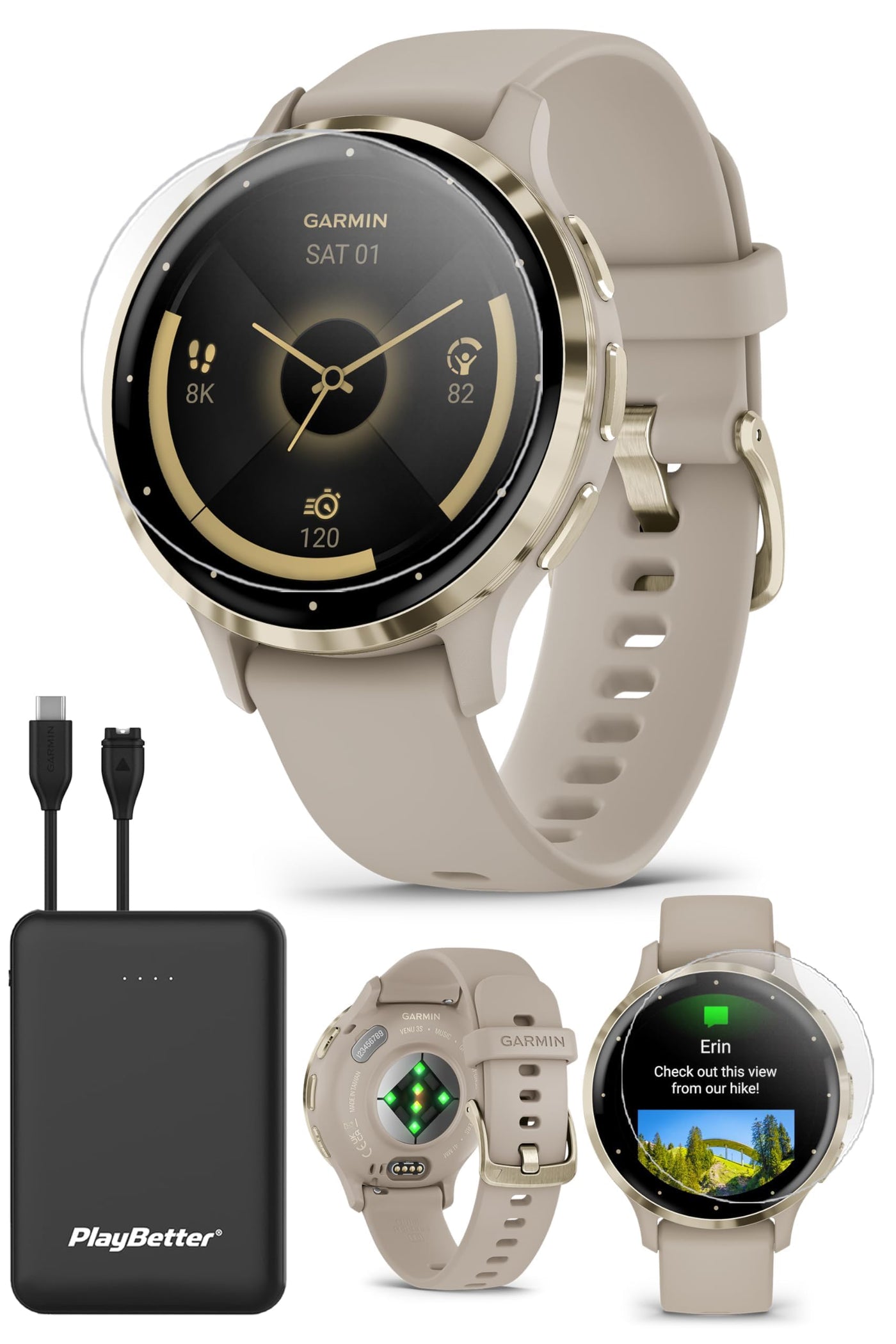 Playbetter Garmin Venu 3S (Soft Gold/French Gray) Fitness Gps Smartwatch Bundle - Amoled Touchscreen, 10 Days Battery, Sleep & R