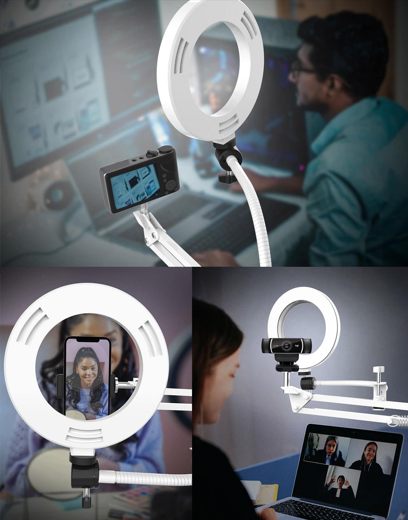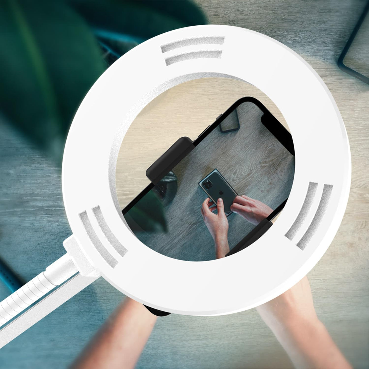 Pozliv White Overhead Camera Mount With Ring Light, Desk Flexible Articulating Phone Arm Stand Compatible With Iphone, Content C
