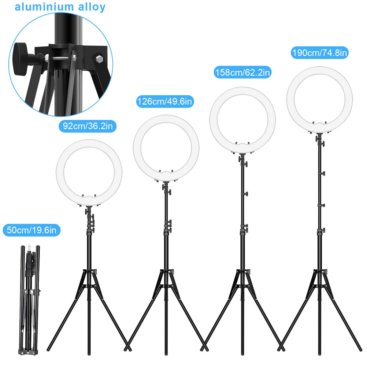 ?High Color Rendering/Multiple Compatiable? Cri =97 And Tlci = 99, High Color Rendering Makeup Ring Light Brings A Real, Natural Color And High Color Reproduction; This Circle Light Is Compatible With Most Dslr Cameras And Most Smartphones (Iphone 8 Plus/8/X/7/6, Samsung Galaxy S9/S8, Huawei, Etc | ?18 Inch Ring Light & Sturdy Tripod Stand? Special Led Smd Design Give Off Great Light 5500K Color Temperature, 10%-100% Brightness Adjustable, Perfect For Vlog, Livestream And Selfie. The Ring Light Tripod Is Made Of Aluminum Alloy For Stabilizing The Makeup Ring Light. Adjustable Height Ranges From 36.2 Inches To 74.8 Inches; Pretty Stable 3-Leg Stage Design And Solid Locking System Keeps All Your Stuff In Safe. | ?More Creative Shooting?The Led Ring Light Panel Can Be 180 Degree Adjustable, Which Meeting Your Different Demands On Suitable Shooting Angle. Widely Apply To Video Lighting, Wedding Art, Advertisement Photography, Selfie, Makeup, Studio Shoot, Portrait, Blogging, Twitch, Live Streaming, Etc. | ?Lightweight & Compact?The 18 Inch Ring Light Weighs Around 5.5Bls And Come With Carry Bag Moreover, The Tall Ring Light Is So Compact That It Takes Very Little Space, And Can Be Used As Barber Light In Your Salon Or Studio. | ?What You Can Get? (1)18 Inches/48 Centimeters Led Ring Light+(1)Ring Light Stand+(1)White And Orange Color Filter Set+(1)Tripod Head Hot Shoe Adapter+(1)Universal Adapter With Us Plug+(1)Smart Phone Holder+(1)Carrying Bag For Ring Light.