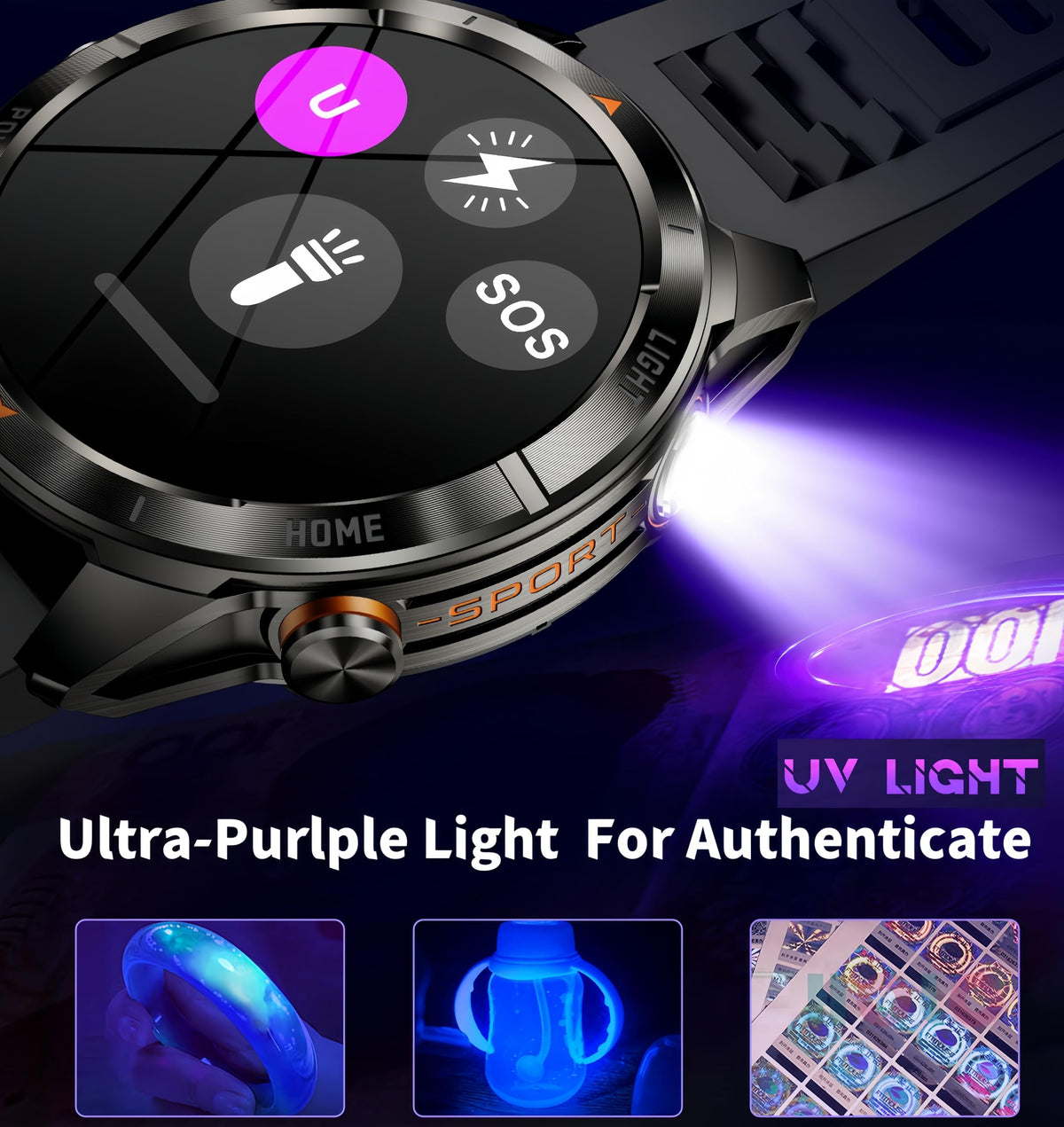 Product Description 1.47 Hd Workout Military Smartwatch - Military-Grade Durability, 25-Day Battery & 4-Level Led Flashlight Elevate Your Lifestyle With This Rugged Yet Stylish 1.47-Inch Hd Smartwatch, Designed For Adventurers And Health-Conscious Users Alike. Its 360 360 Ips Display Delivers Crystal-Clear Visuals With A 50Hz Refresh Rate For Seamless Navigation, While The Zinc Alloy Casing Ensures Military-Grade Toughness Against Drops, Dust, And Water (Ip68 Rated). Standout Features: Industry-Unique 4-Level Led Flashlight: Adjust Brightness Or Activate Sos Modes (Slow/Fast Flashing) For Emergencies-Unmatched By Competitors. 530Mah Long-Lasting Battery: Enjoy 25-Day Standby And 10-15 Days Of Regular Use, Reducing Frequent Charging Hassles. Ai-Powered Health Monitoring: Track Heart Rate, Blood Oxygen (Spo2), Sleep Stages, And Calories With Clinical-Grade Accuracy. 100+ Sport Modes & 5Atm Waterproof: From Swimming To Hiking, Monitor Real-Time Stats Like Distance, Pace, And Cadence. Bluetooth 5.3 Calling & Notifications: Answer Calls, Receive Whatsapp/Gmail Alerts, And Use Voice Control Hands-Free. Why Choose Us? Free Lifetime Accessories: Extra Straps/Cables Upon Request. 24-Month Warranty: Backed By 24/7 Support For Worry-Free Ownership. Ideal For Outdoor Enthusiasts And Daily Users, This Smartwatch Blends Cutting-Edge Tech With Uncompromising Durability-Your Ultimate Wrist Companion.