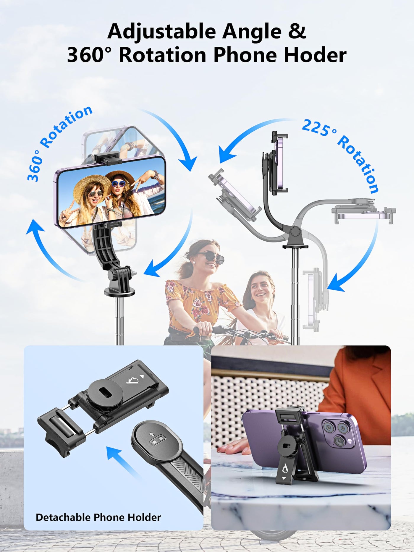 Selfie Stick & Phone Tripod, All In 1 Selfie Stick With Remote, Phone Travel Tripod Stand For Video Recording, Live Streaming, P
