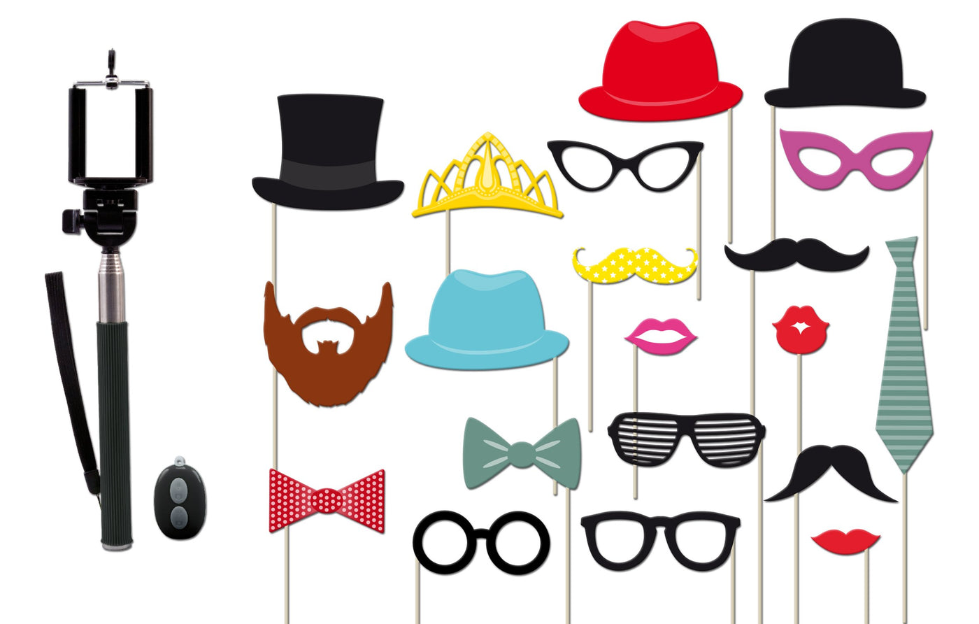 Snap The Best Selfies & Pics With Your Friends! Includes Extendable Selfie Stick, Bluetooth Remote, And 25 Props.