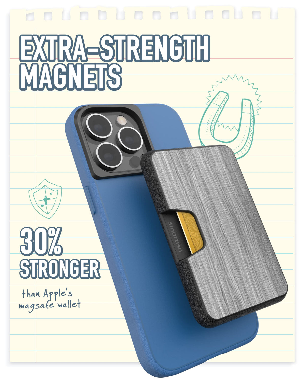 Smartish Wallet For Magsafe Iphones - Side Hustle - Slim Detachable Magnetic Card Holder For Apple Iphone 17/16/15/14/13/12/13/12 - Graspin Aspen