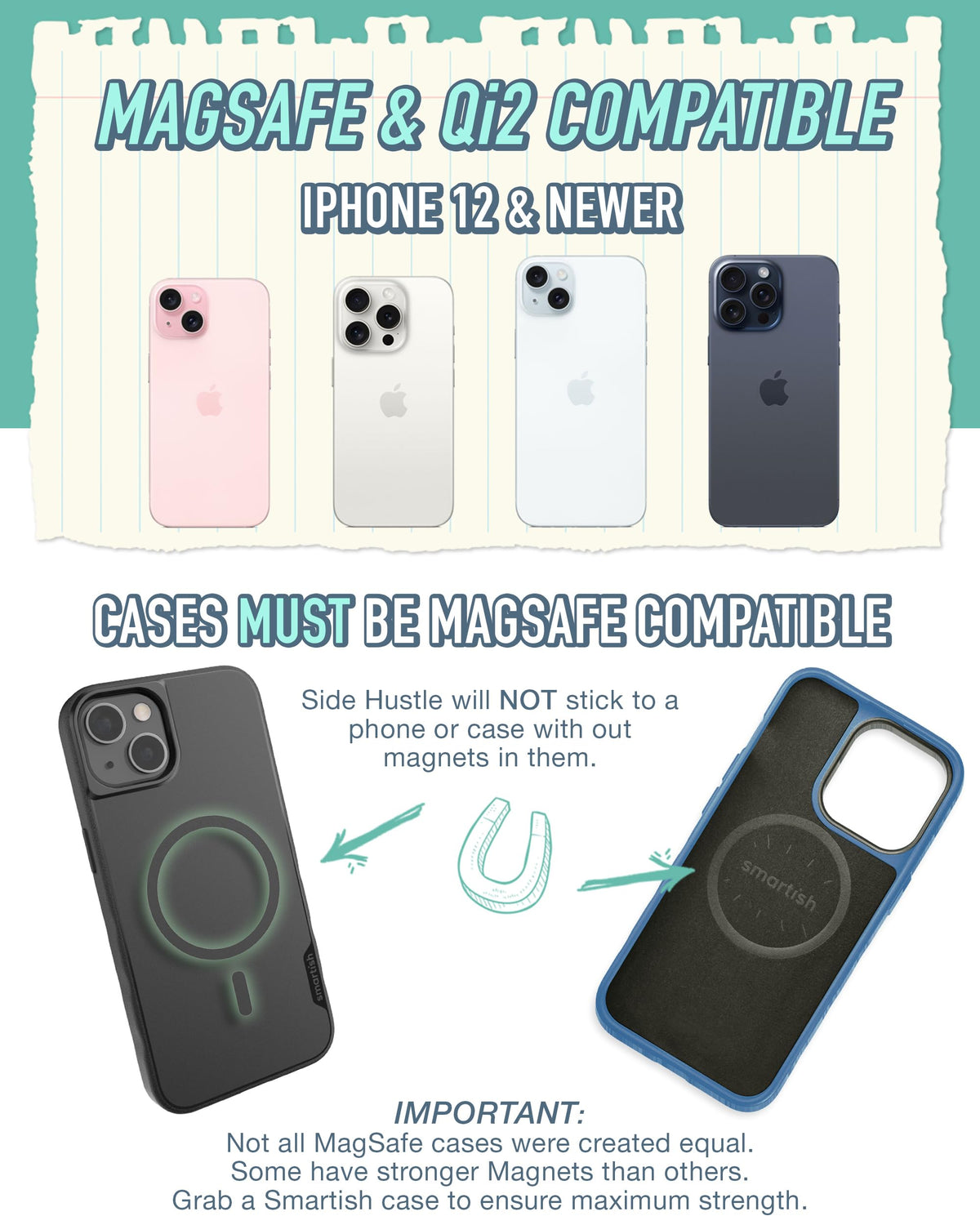 Smartish Wallet For Magsafe Iphones - Side Hustle - Slim Detachable Magnetic Card Holder For Apple Iphone 17/16/15/14/13/12/13/1