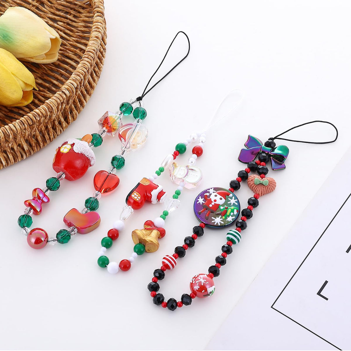 Christmas Phone Charm: There Are 3 Pcs Of Christmas Phone Lanyard, Cute Christmas Themed Accessories. You Can Easily Match Them With Your Christmas Clothes. | Christmas Gifts: These Christmas Themed Phone Wrist Strap Are The Best Gifts For Your Mother, Sisters, Classmates And Friends Before Christmas. | Material: Acrylic Charm, Glass Beads, Strung Together With Sturdy Nylon Ropes, Not Easily Broken. | Size: Beaded Phone Chain Circumference 26Cm / 10 Inches. Due To Manual Measurement, Please Allow 1-2 Cm Different. | Intimate Service: If You Have Any Questions About Products And Services, Please Feel Free To Contact Us, We Will Provide You With Satisfactory Pre-Sales And After-Sales Services.