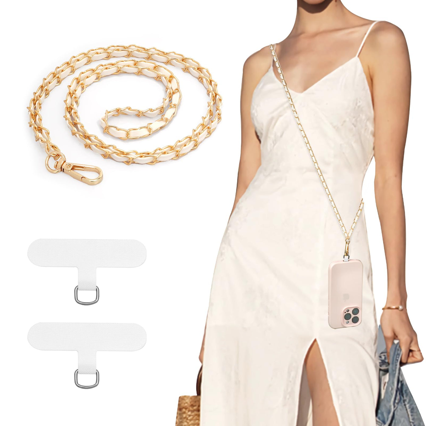?Multi-Functional Phone Chain Lanyard?57.1 Inches Perfect Length For Crossbody Or Shoulder Carrying. It Is Lightweight And Wont Cause Much Burden On Your Shoulder, So You Can Put Down Your Cell Phone To Free Your Hands To Do Other Things Anytime And Anywhere. The Crossbody Phone Strap Is Not Only For Your Cell Phone, But Also For Keys, Car Keys, Credit Card Holders, Wallet Purse, Handbags, Etc. | ?Fashionable Accessories?Designed With Sturdy Alloy Chain And Soft Pu, The Phone Necklace Is Elegant, Solid And Durable. Thanks To The Multi-Layer Plating Process, The Chain Will Not Fade And Will Maintain Its Timeless Beauty, Bringing A Subtle Sense Of Fashion. | ?Hand-Free & Travel-Friendly?The Lanyard For Iphone Turns Your Phone Into A Wearable Accessory, Keeping Your Phone Within Easy Reach All The Time Without Having To Fumble With It In Your Pocket Or Bag. Free Your Hands When Holding Your Kids, Shopping, Walking Your Dog, Biking Or Light Traveling. Ease The Burden Of Carrying Your Cell Phone On The Go, Making It Easier And Safer For You To Use Your Phone. | ?Easy To Use?No Tools Needed, Just Pass The Tether Patch Through The Charging Hole Of The Phone Case And Then Connect The Clasp To The Metal Phone Lanyard. The Thin Patch Supports Both Wired And Wireless Charging Without Removing It, And It Wont Block The Charging Port. | ?Compatible With All Phone Cases?This Universal Phone Lanyard Fits Seamlessly For All Phones With Full-Coverage Cases, Including The Iphone, Samsung Galaxy And More.