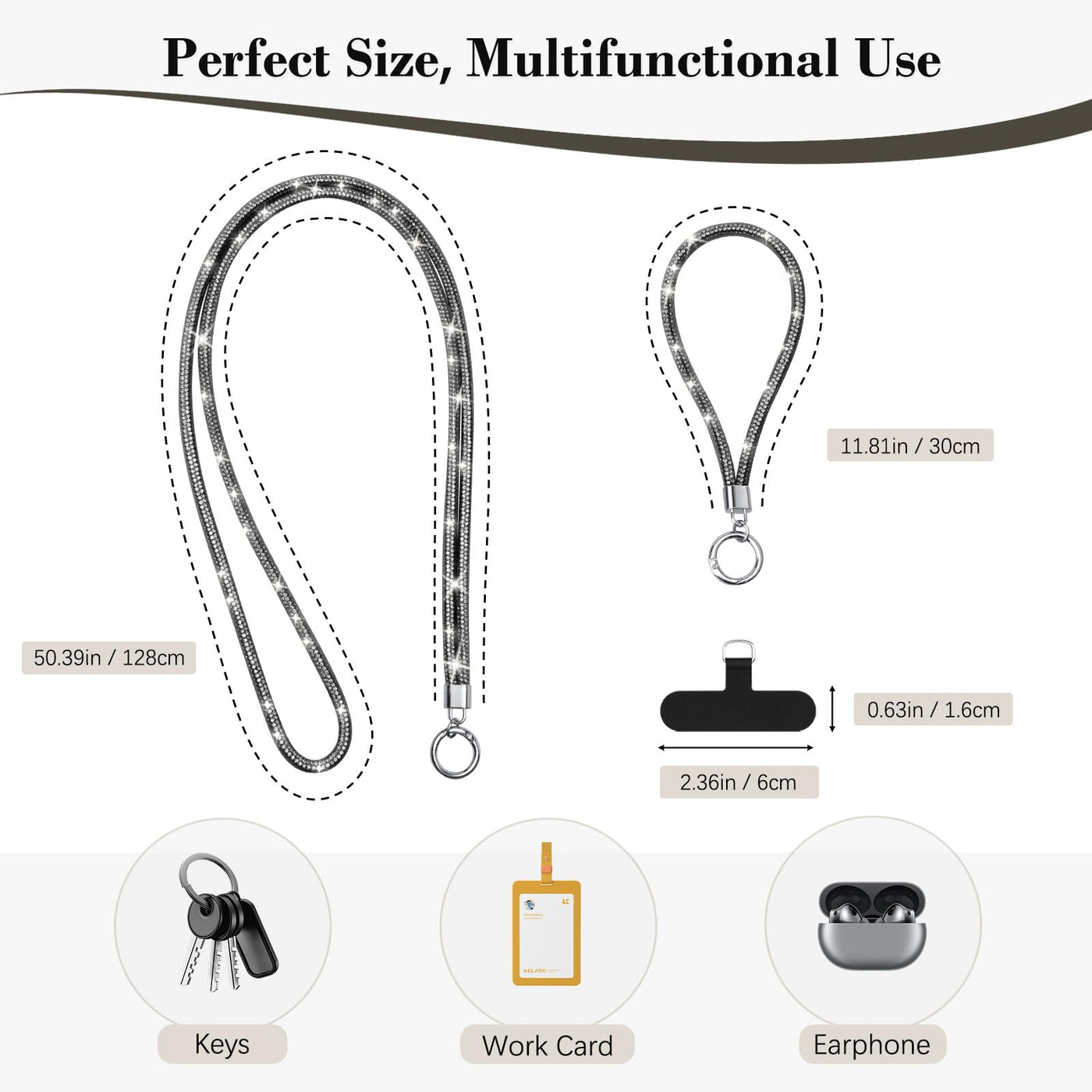 Timovo Universal Phone Lanyard Crossbody, Rhinestone Cell Phone Chain Anti-Theft With 1 Shiny Phone Strap, 1 Wrist Strap, 2 Pads For Most Smartphones, Phone Neck Holder For Women