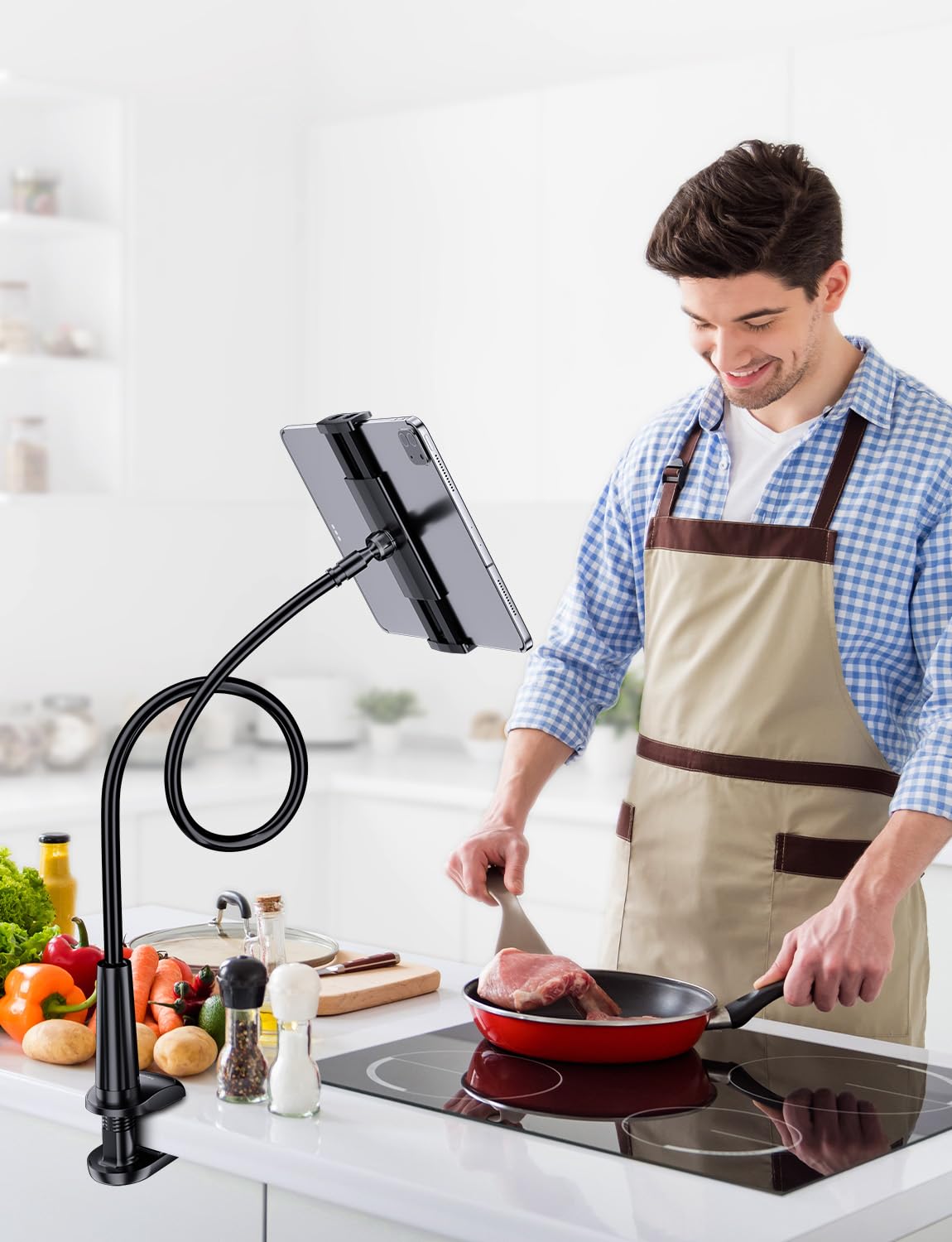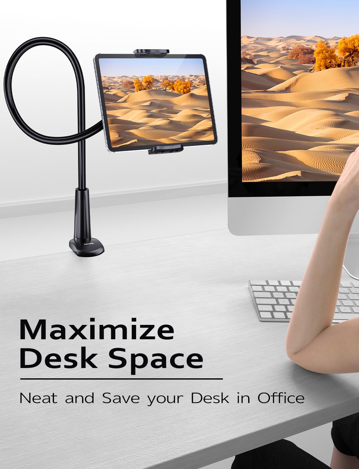 Tryone Gooseneck Tablet Holder Stand For Bed Adjustable Flexible Arm Tablets Mount Clamp On Table Compatible With Ipad Air Mini