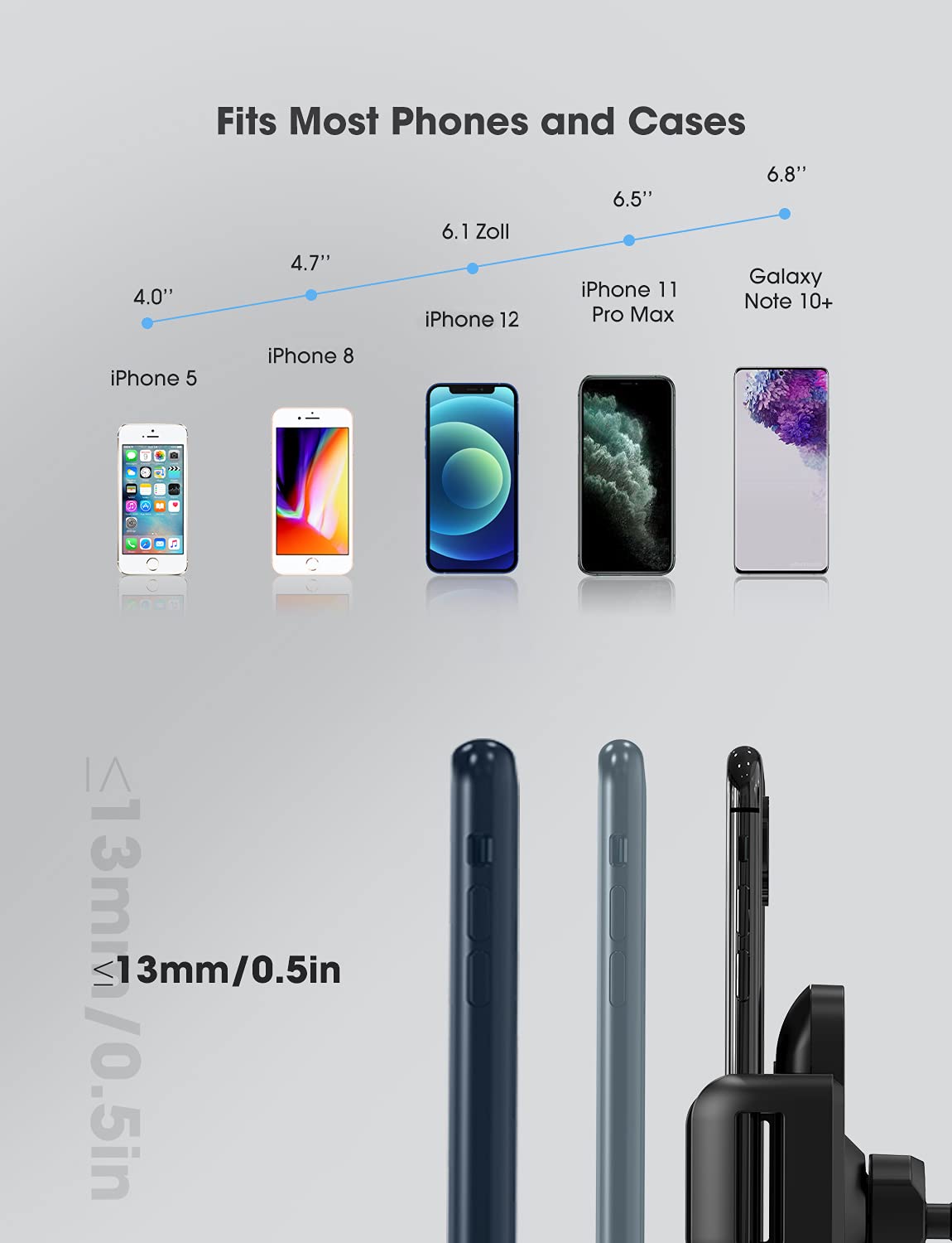 Q: Is the VSSMSSA Phone Mount compatible with my smartphone?A: Yes, the VSSMSSA Phone Mount is designed to be compatible with a wide range of smartphones including the iPhone 14, 13, 12, 11 Pro Max, and various Galaxy models like Note 20, S20, S10, as well as other smartphones between 4-6.9 inches.