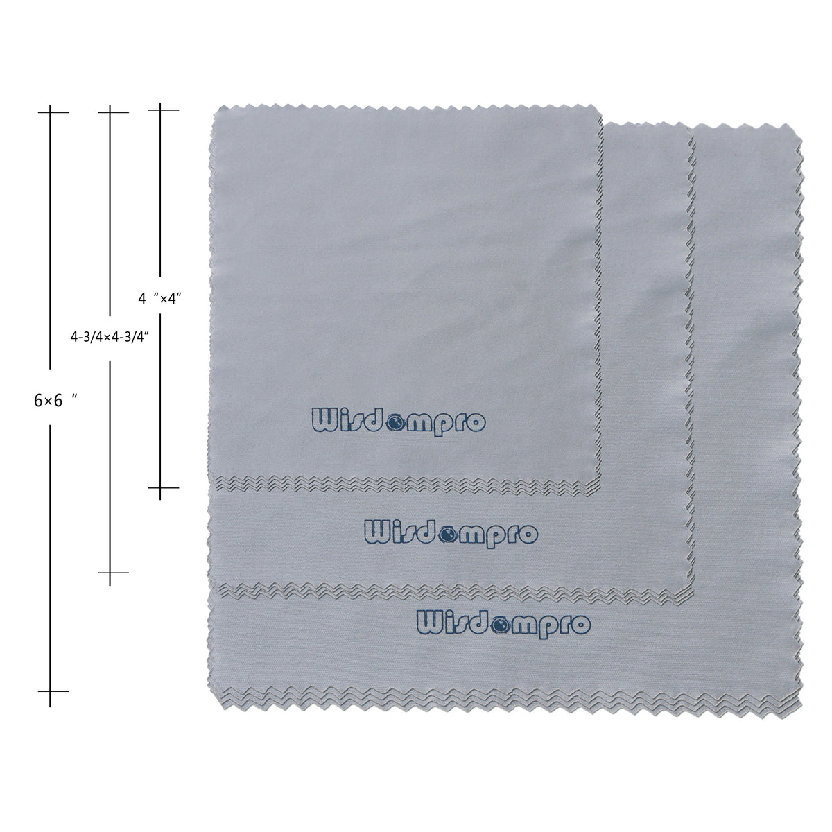 Q: How many microfiber cleaning cloths are included in the Wisdompro pack?A: The Wisdompro pack includes a total of 12 microfiber cleaning cloths in assorted sizes: 4 pieces of 4 x 4 inch cloths, 4 pieces of 4-3/4 x 4-3/4 inch cloths, and 4 pieces of 6 x 6 inch cloths.