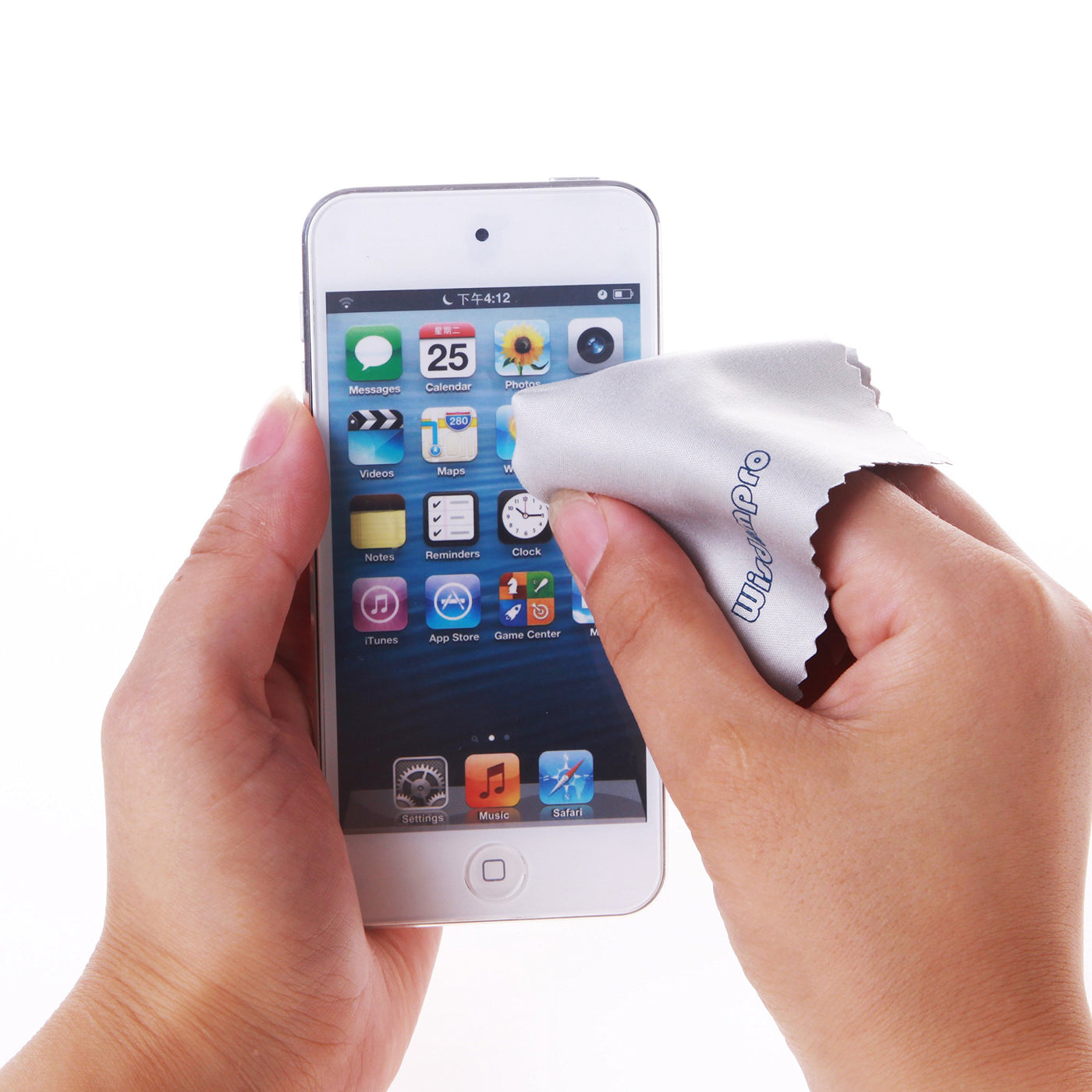 Q: Does the pack include any additional items?A: The Wisdompro retail package includes 12 pieces of 4-3/4 x 4-3/4 inch microfiber cleaning cloths, but please note that devices are not included.