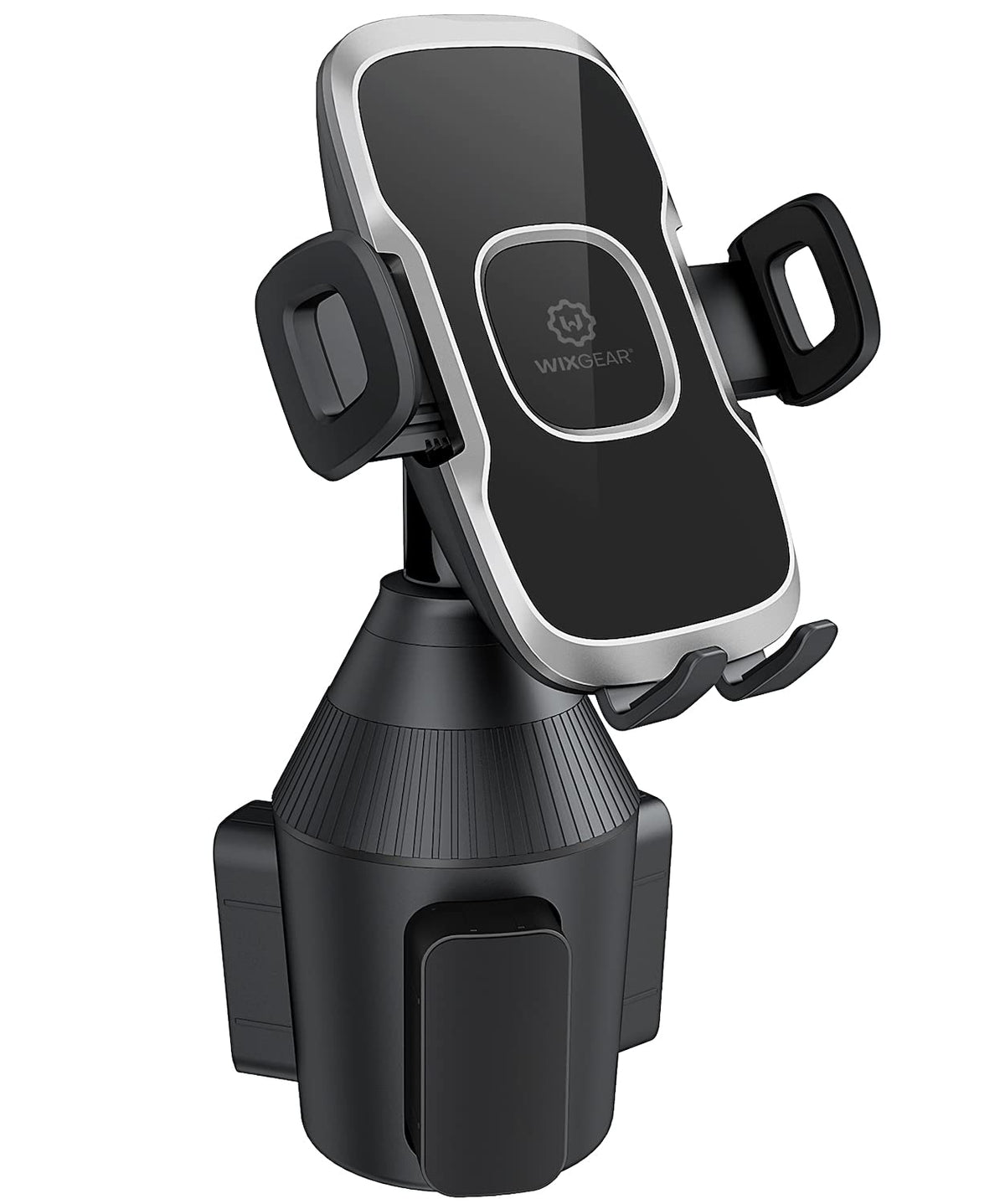 Q: What material is the WixGear Cup Holder Phone Mount made from?A: The WixGear Cup Holder Phone Mount is constructed from durable alloy steel, providing a sturdy base that securely holds your phone in place during your drive.