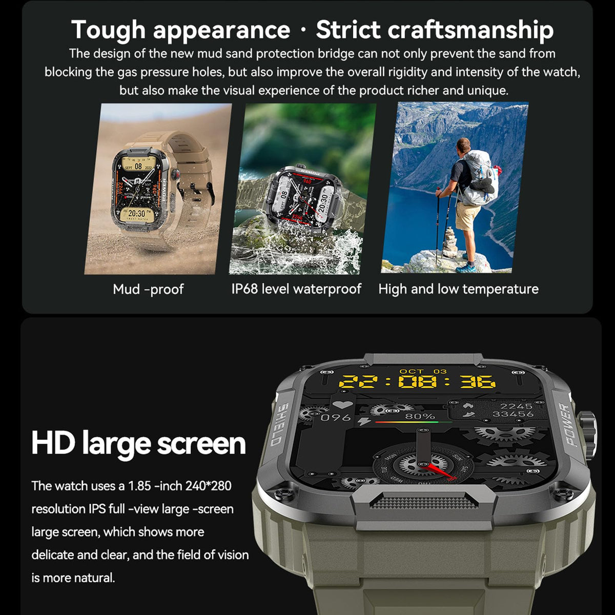 Yoimjoyfun Mens Smartwatch, 1.85-Inch Large Display, Android-Enabled Smart Fitness Watch, Takes And Makes Calls (Green)