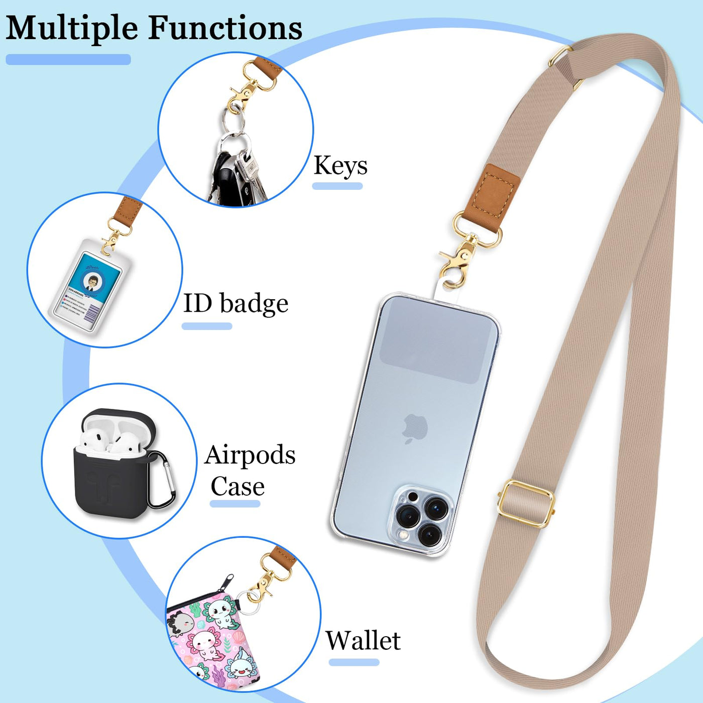 Yonlevres Phone Lanyard Crossbody Phone Strap, Beige Cell Phone Lanyards For Around The Neck Wristlet Wrist Strap, Solid Color Adjustable Lanyard Keys Case Id Badges Phone Accessories Travel Essentials