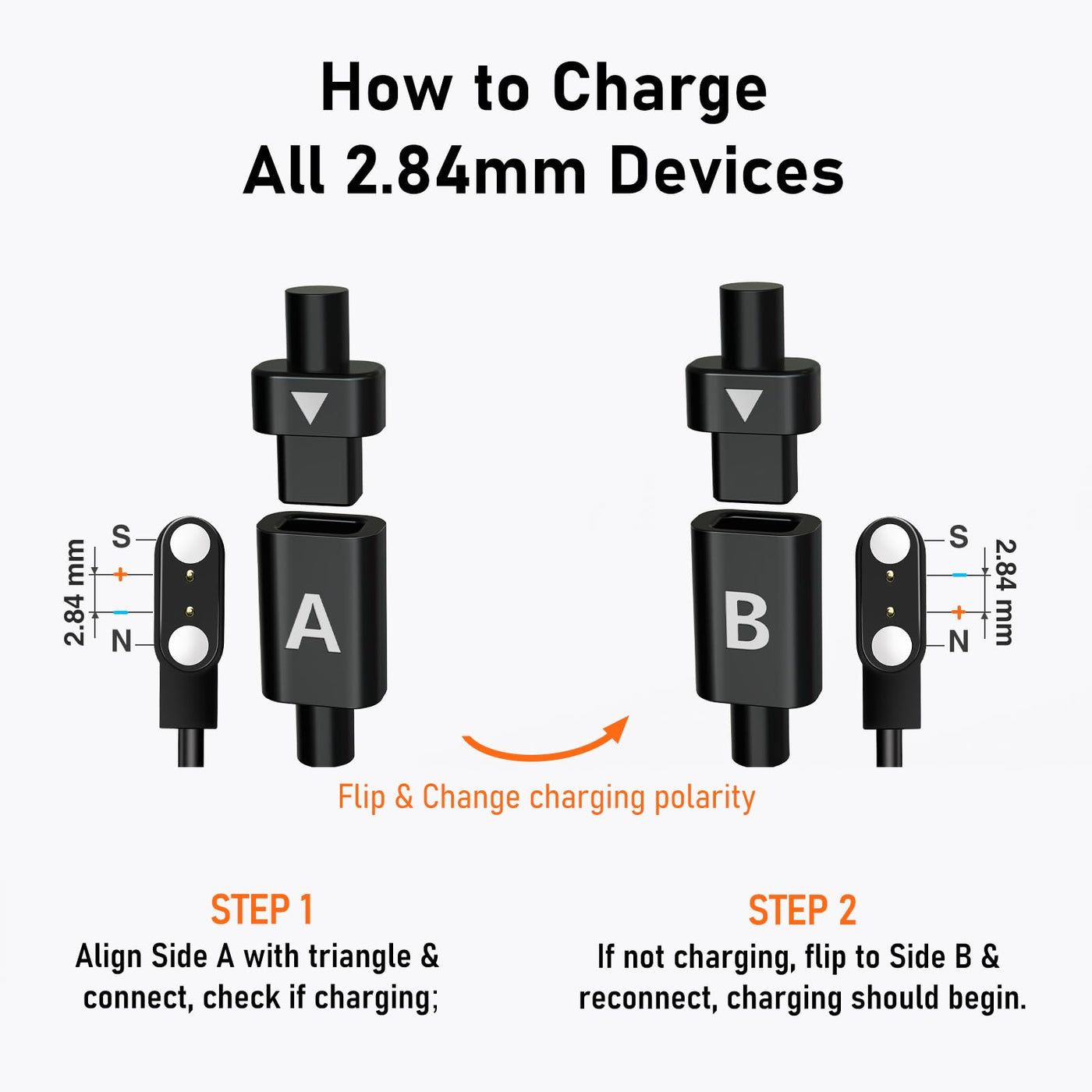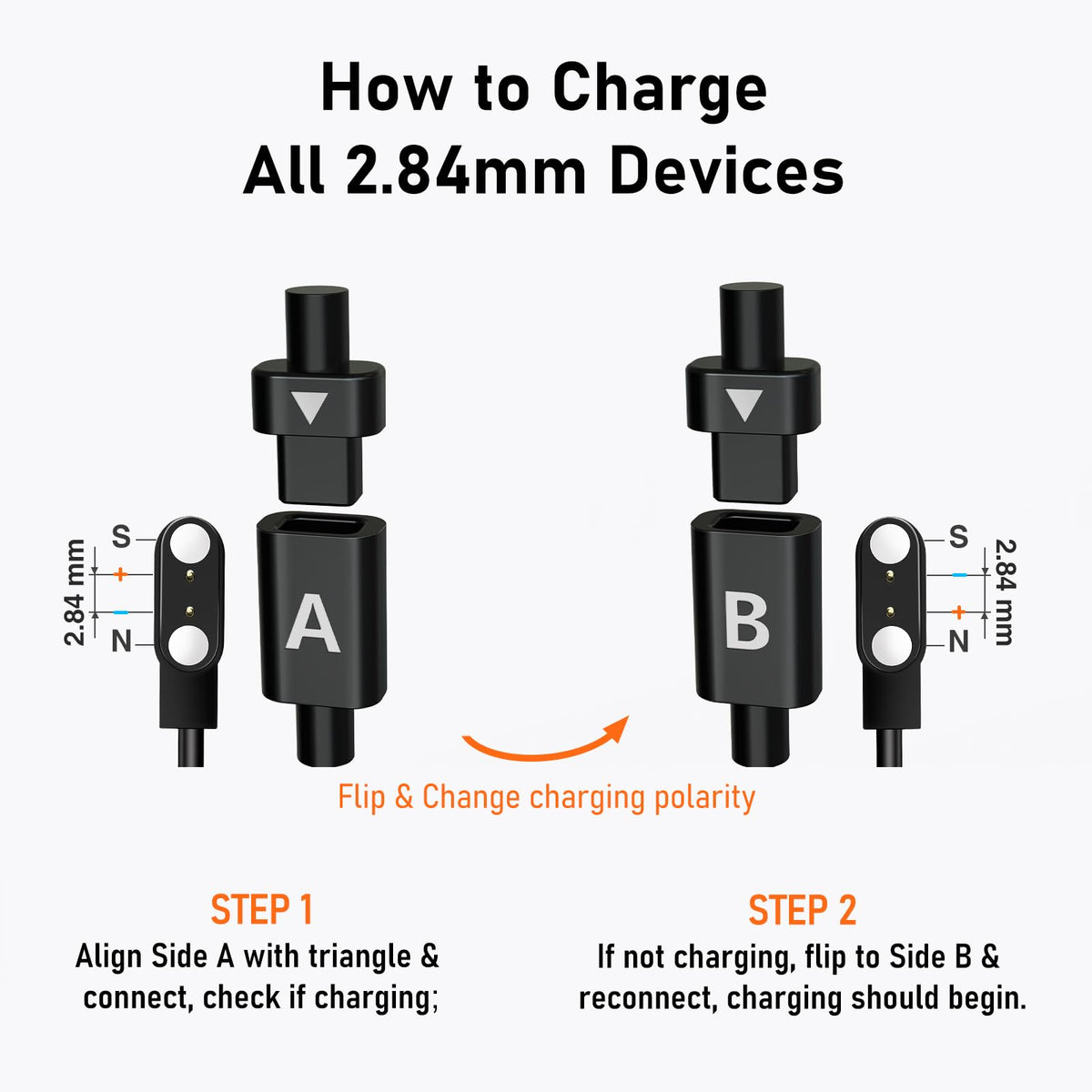 2-Pack Ab284 Innovative Smart Watch Charger - Magnetic Reversible Charging Cable, Solves Polarity Mismatch, Universal For All 2.84Mm-Pin-Pitch Devices: Select Bone Conduction & Open-Ear Headphones
