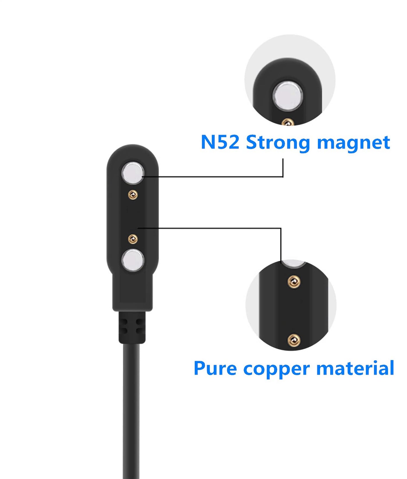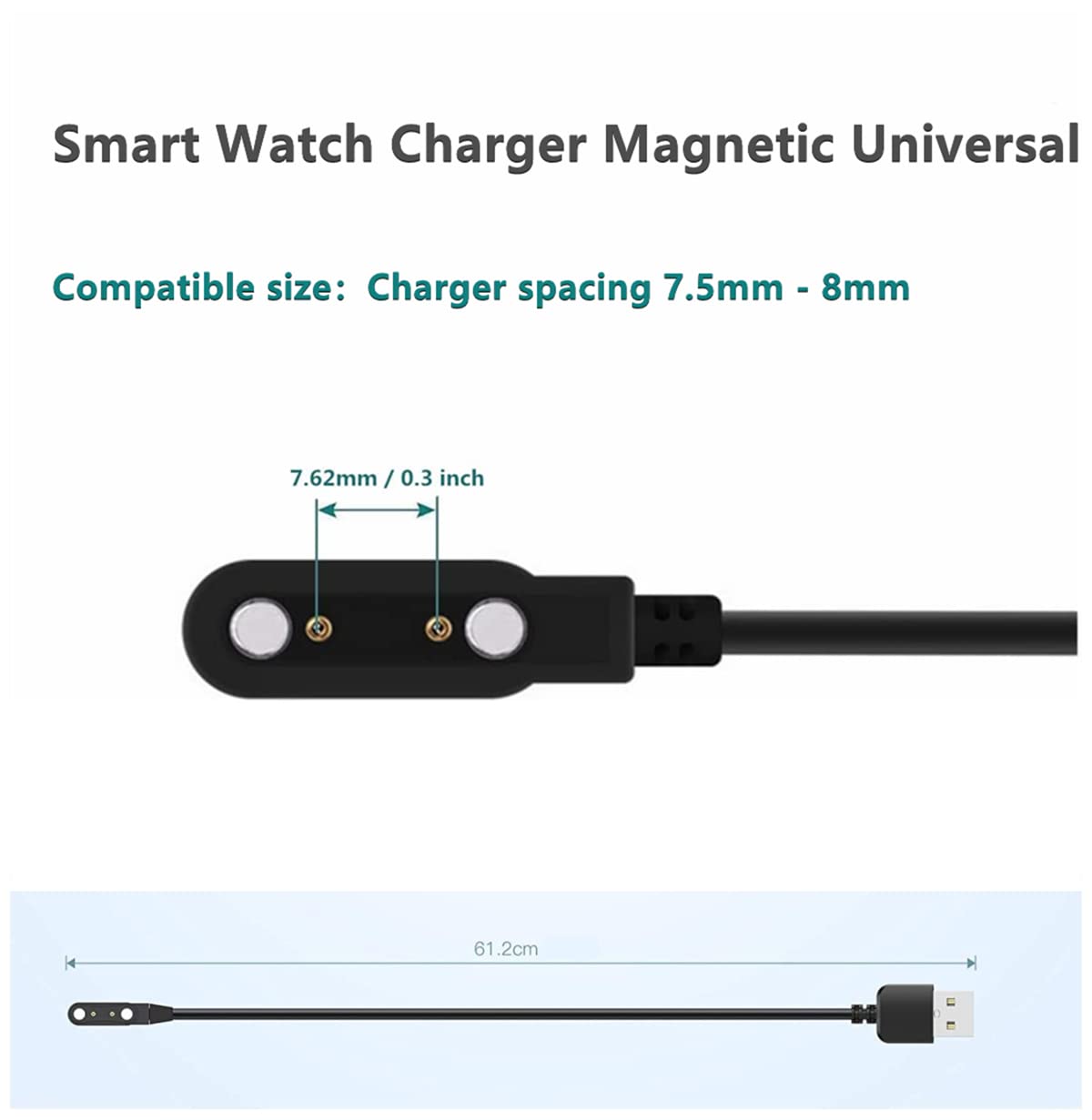 This Charger Is Compatible For Most Electronic Products That Use Magnetic Charging, Such As Smart Wearable Device Such As Smart Watch / Smart Glasses / Fitness Tracker,The Distance Between The Two Points At The Center Of The Charging Contact Is 7.62 Mm(Before Buying, Please Measure The Distance Between The Two Points Of The Center Of The Charging Contact Of The Watch, The Distance Between The Two Points Of The Charging Contact Can Be 0.2 Mm) Feature: 1.Wide Compatibility, Compatible With Most Magnetic Charging Devices. 2. Fast Charging & Stable Performance 3. Magnetic Charging To Be Convenient And Fast, Charging Interface Is Stable, The Connector Is Not Easy To Fall Off. 4. Built-In Anti-Short Circuit Protection Module To Prolong Battery Life. Specifications: Materials: Pc+Abs (Recharge Stand),Pvc (Cable) Cable Length: 60 Cm Input: 5V / 1000-1500 Mah Output: 5V/ 1000 Mah Note: If This Product Cannot Charge Your Device, Please To Use A Tool To Remove The Two Magnets On The Charger To Swap Positions(Because The Positive And Negative Poles Of The Charging Contacts Of Some Electronic Devices Are Opposite). This Charger Can Be Used Normally After Changing The Position Of The Magnet.