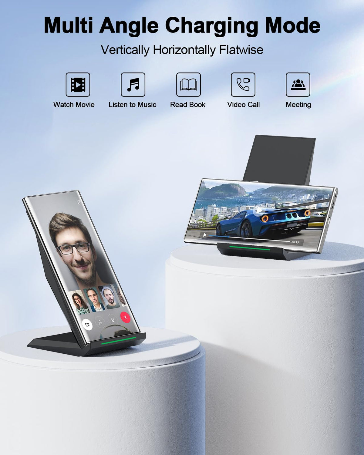 Nanami Quick Wireless Charging Stand Qi Fast Chargerenjoy Wireless Convenience, Farewell To Tangled Cable Messdevice Support 10W Fast Wireless Charging-Samsung Galaxy S23/S23+/S23 Ultra/S22/S22+/S22 Ultra,S21/S21+/S21 Ultra, S20/S20+/S20 Ultra, Note 20/20 Ultra, Note 10/10+, S10/S10 Plus/S10E, S9/S9 Plus, Note 9, S8/S8 Plus, Note 8, S7/S7 Edge, Note 5, S6 Edge Plusdevice Support 7.5W Fast Wireless Charging:-Iphone 14/14 Plus/14 Pro/14 Pro Max/Iphone 13/13 Mini/13 Pro/13 Pro Max/Iphone 12/Iphone 12 Pro/Iphone 12 Pro Max/Iphone 11/Iphone 11 Pro/Iphone 11 Pro Max/Iphone Xs/Iphone Xs Max/Iphone Xr/Iphone X/Iphone 8/Iphone 8 Plusdevice Support 5W Standard Wireless Charging:-Samsung S6, S6 Edge-Google Pixel 3/3Xl, Nexus 6/4/5 And So Ondevice Need Wireless Charging Receiver (Not Included )-Samsung S5, S4, S3, Note 4, Note 3-Lg G3,Lg G4 And Morenote:For Fast Charging, This Qc 2.0 Adaptive Fast Charger Is Required Qc 2.0 Or 3.0 Adapter As Its Power Source. (Not Including The Ac Adapter)Not Using Power Source From Computer, Because The Output From Computer Is Only 500-800Ma.What'S In The Box2 X Nanami Fast Wireless Charging Stand2 X Usb Power Cable (Not Including The Ac Adapter)1 X User Manualwarranty12-Month Warranty And A 30-Day Money Back Guaranty.