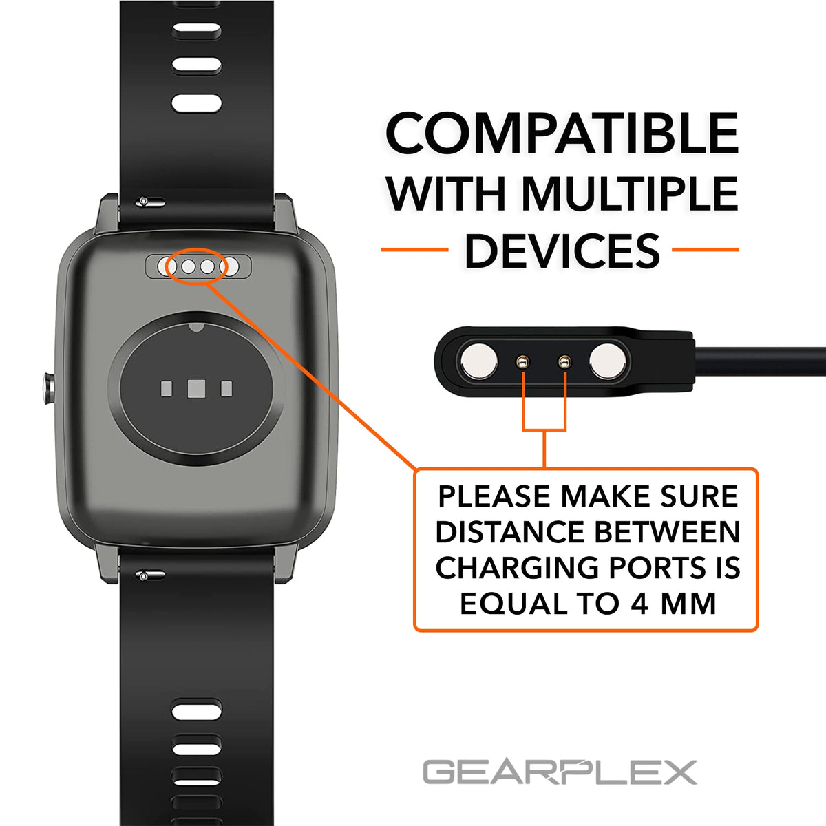 Gearplex Charging Usb Cable (2 Pin Magnetic) For Smart Watch Bluetooth Devices Black (Size- 4.0 Mm- 2 Pack)