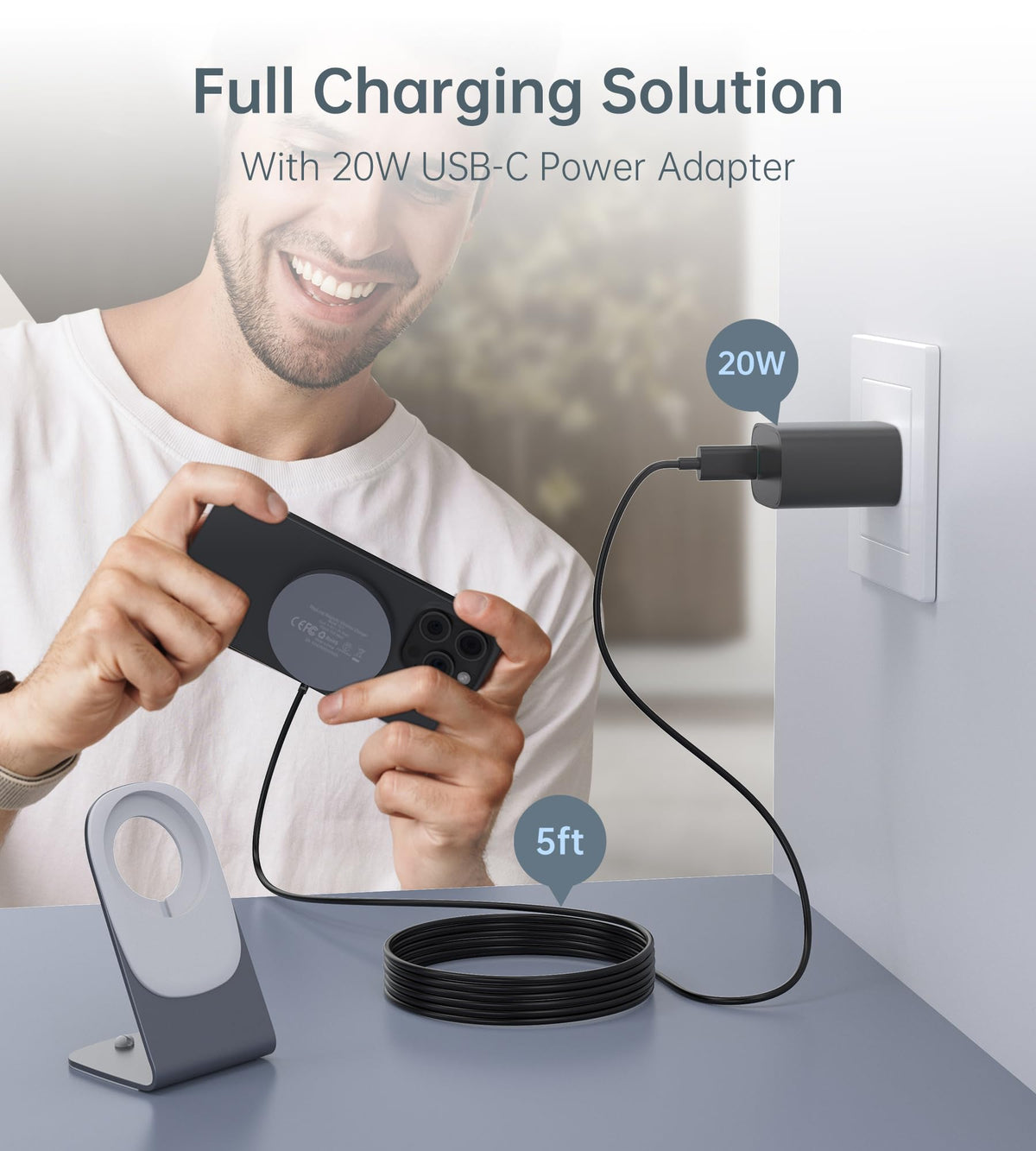 Kabysio Wireless Charger, Mag Safe Charger+20W Usb C Adapter, Fast Wireless Charging Stand/Pad With 5Ft Cable For Iphone 15/14/1