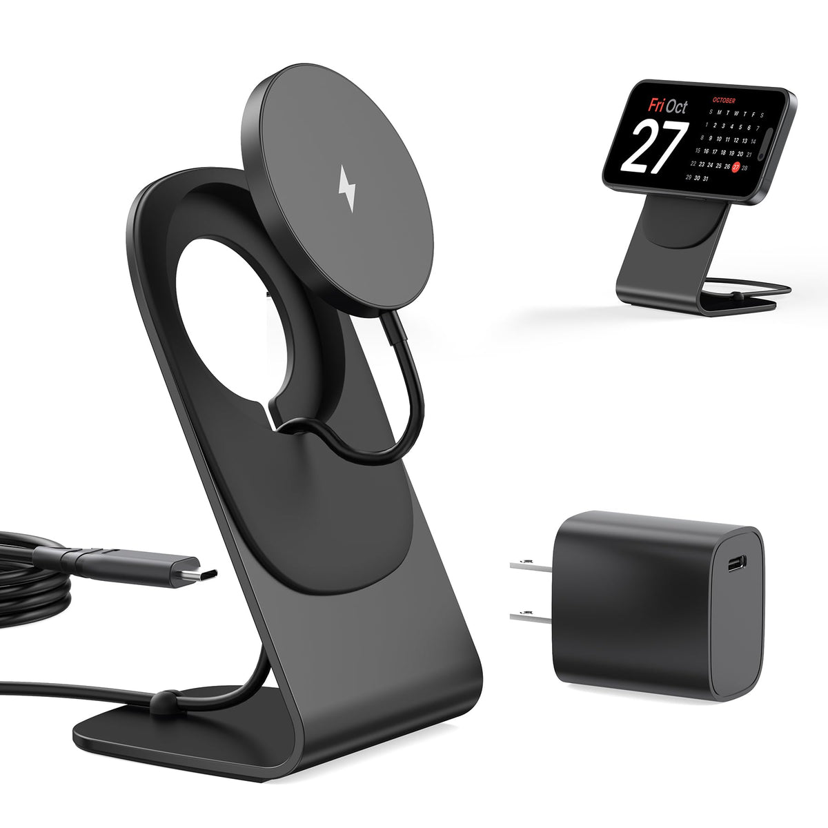 Magnetic Wireless Charger With Aluminum Charging Pad Stand Compatible With Iphone 16/15/14/13/12 Series,20W Pd Charger&5Ft Cable