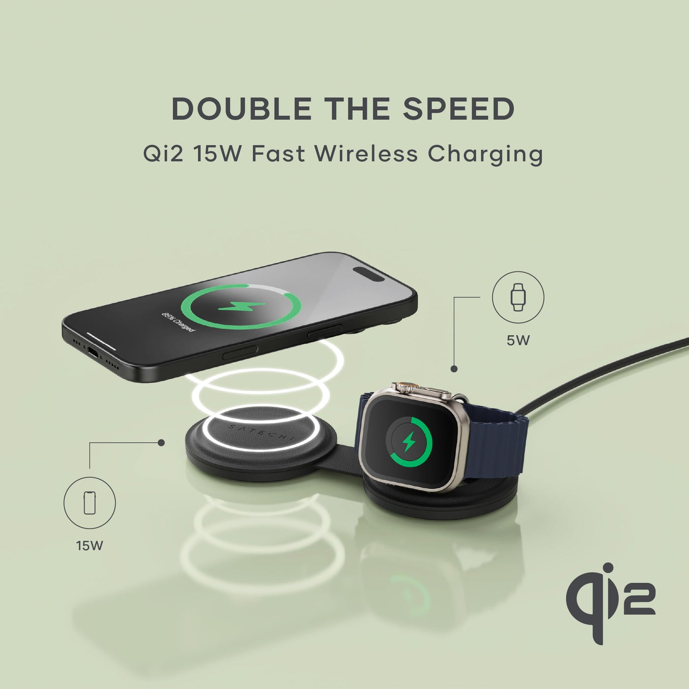 Satechi Onthego 2 In 1 Wireless Charger, Qi2 Portable Charger With 15W Fast Charging For Iphone And 5W For Apple Watch, Magnetic