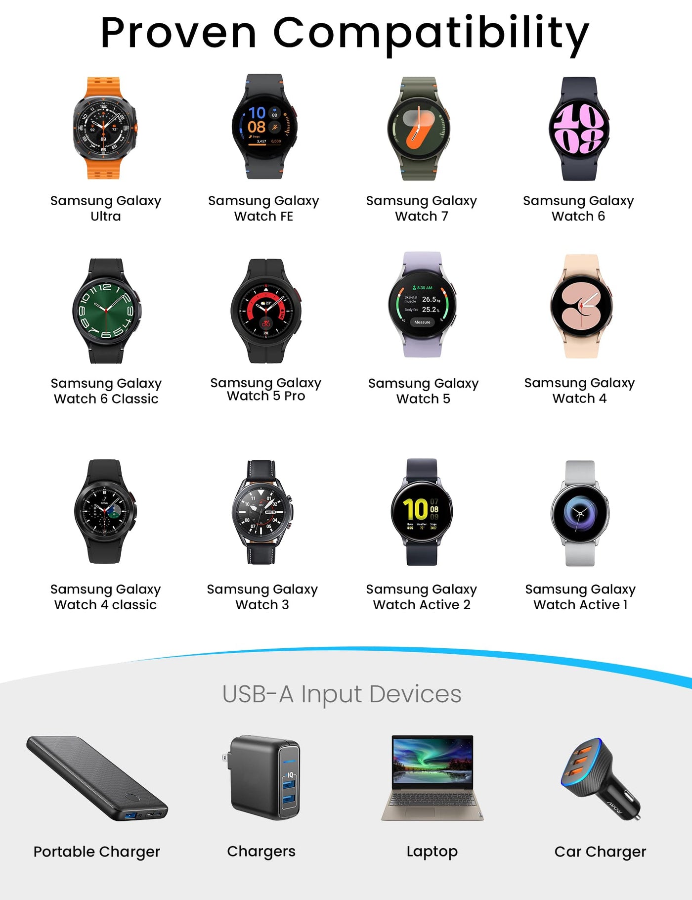 Sinoacc Charger For Samsung Galaxy Watch Ultra/7/6/6 Classic/5/5 Pro/4/4 Classic/3/Active 2/Active 1/Fe Galaxy Watch Charger 3.3Ft Usb Magnetic Wireless Charging Cable Cord For Samsung Galaxy Watch(Not For Gear S2/S3/S4)