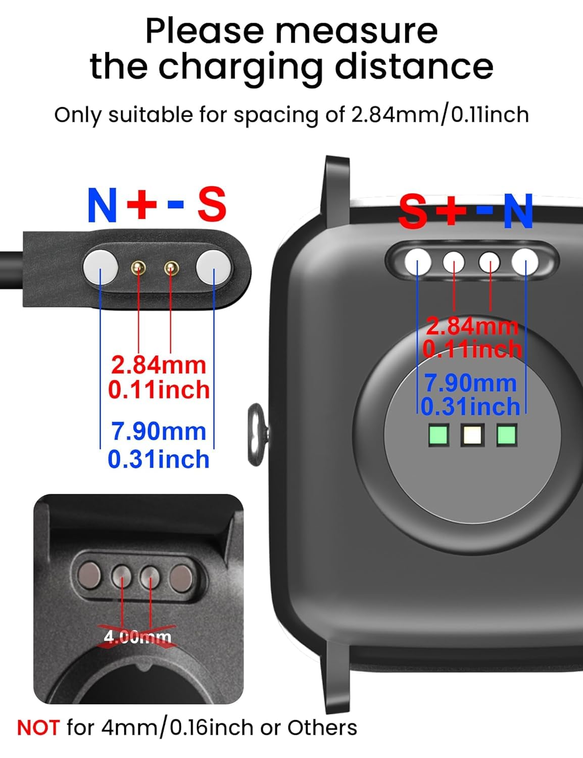 - Charging Distance: Designed to work perfectly with a spacing of 0.11 inches (2.84mm). Not compatible with devices requiring a spacing of 0.16 inches (4mm) or other specifications.