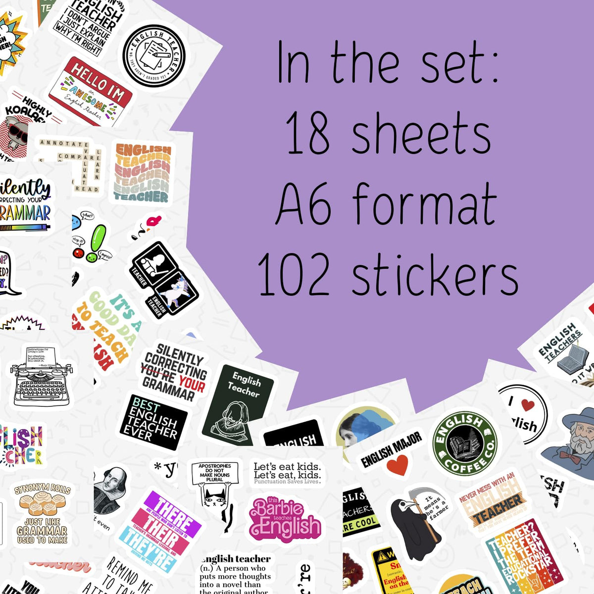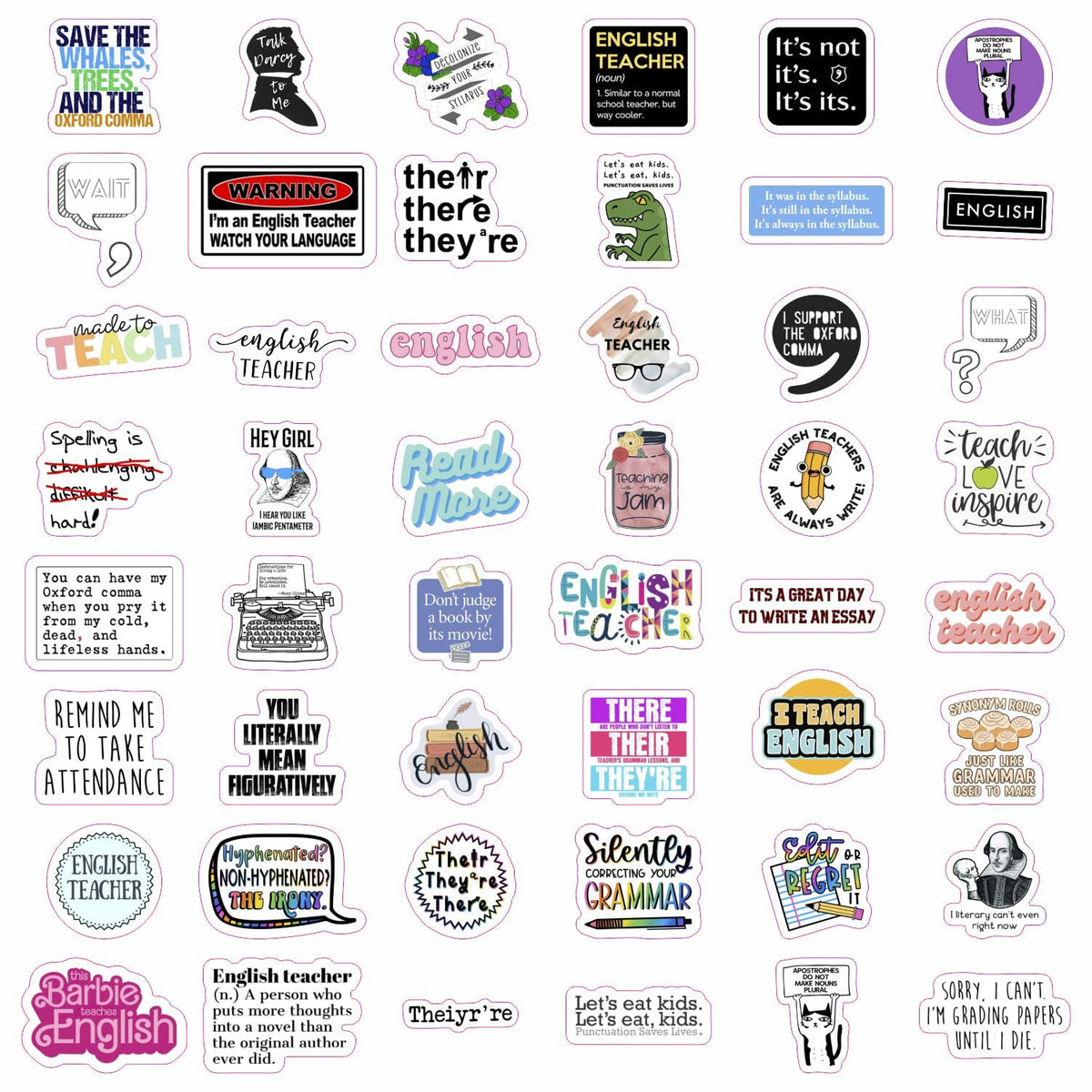 High Quality - You Can Be Sure That Only High-Quality Vinyl Is Used For English Teacher Stickers. Our Stickers Are Made Of Durable Vinyl Material, Ensuring Long-Lasting Adhesion And Vibrant Colors. | Sticker Sheets - English Teacher Sticker Pack Contains Several Sheets. Sticker Sheets Are Less Likely To Get Damaged Or Bent Compared To Loose, Cut-Out Stickers. | Waterproof - English Teacher Stickers Are Designed To Be Waterproof, So They Are Perfect For Use On Water Bottles And Outdoor Items. | Perfect Gift - Surprise Your Friends And Family With These Fun And Expressive English Teacher Stickers, Perfect For Any Occasion. Stickers Are A Great Gift For Anyone Who Loves Personalizing Their Belongings. | Decor - Perfect For Decorating Laptops, Phones, Skateboards, Luggage, Bikes And More. Use Them As English Teacher Stickers Party Favors And English Teacher Stickers Party Decorations. Let Your Creativity Run Wild With Our Diverse Sticker Designs.