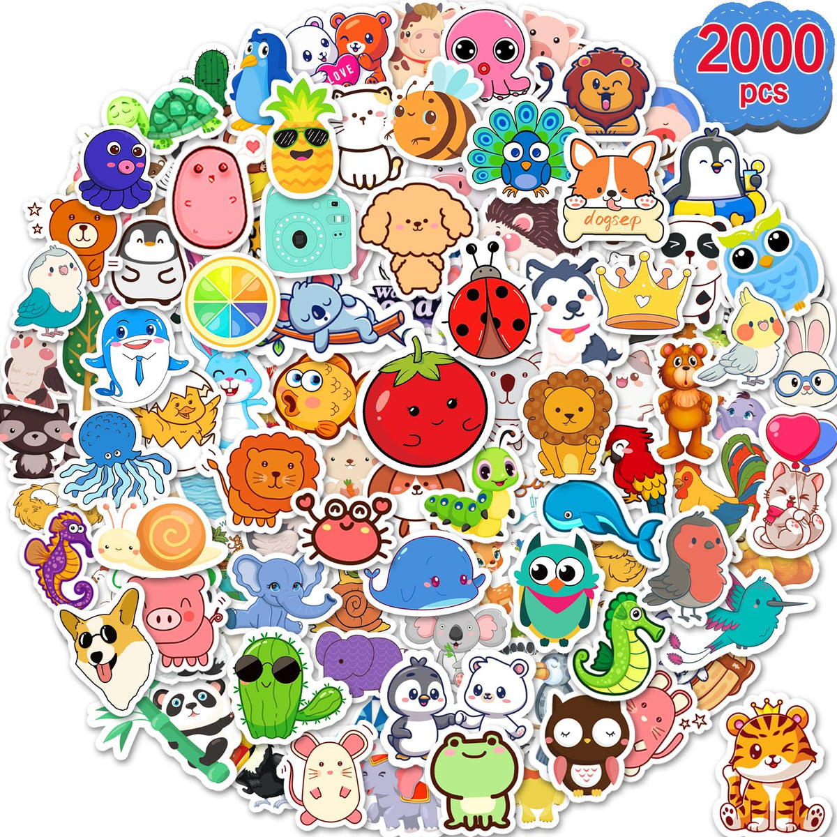 2000 Pcs Cute Stickers For Kids, Water Bottle Stickers For Teens, Kawaii Vinyl Phone Laptop Skateboard Animal Waterproof Sticker