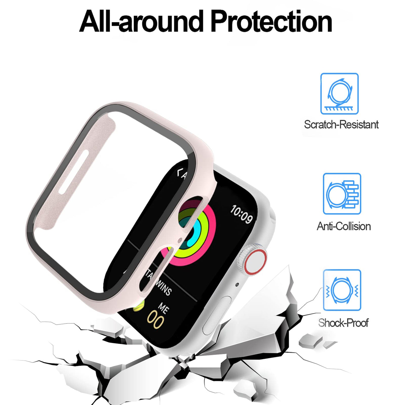 Compatible Models]:This Perfect Accessory Case Built With Tempered Glass Screen Protector Designed For Apple Watch 41Mm Series 9(2023)& Series 8(2022)& Series 7(2021),Just Make Sure Choose The Right Size For Your Own Watch 2 In 1 Design Protector]: Hard Case Built In Ultra-Thin Clear Tempered Glass Screen Protector(Which Hasnt The Touching Problem), Covers Both Of The Screen And Edges, 360 Degree Protects Your Apple Watch From Scratch, Bumps And Accidental Drops High Sensitive Touch]: This Apple Watch Case With High Definition Tempered Glass Screen Protector Does Not Interfere With Any Screen Usability At All, That Presents A Original Clear Image Quality And The Original Touch Sensitivity Best Choice Precise Cutouts]: This Apple Watch Case Is Designed With Precise Cutouts, That Makes Easy Access To All Controls, Buttons, Sensors And All Of Watch Features Also You Can Charge Your Watch With This Case On Very Easy To Intall In Several Seconds Package Include]: 5 Pack Case With Tempered Glass Screen Protector For Apple Watch Series 987 41Mm Any Problem With This Product, Please Feel Free To Contact Us Via Email, We Will Give You Best Silution