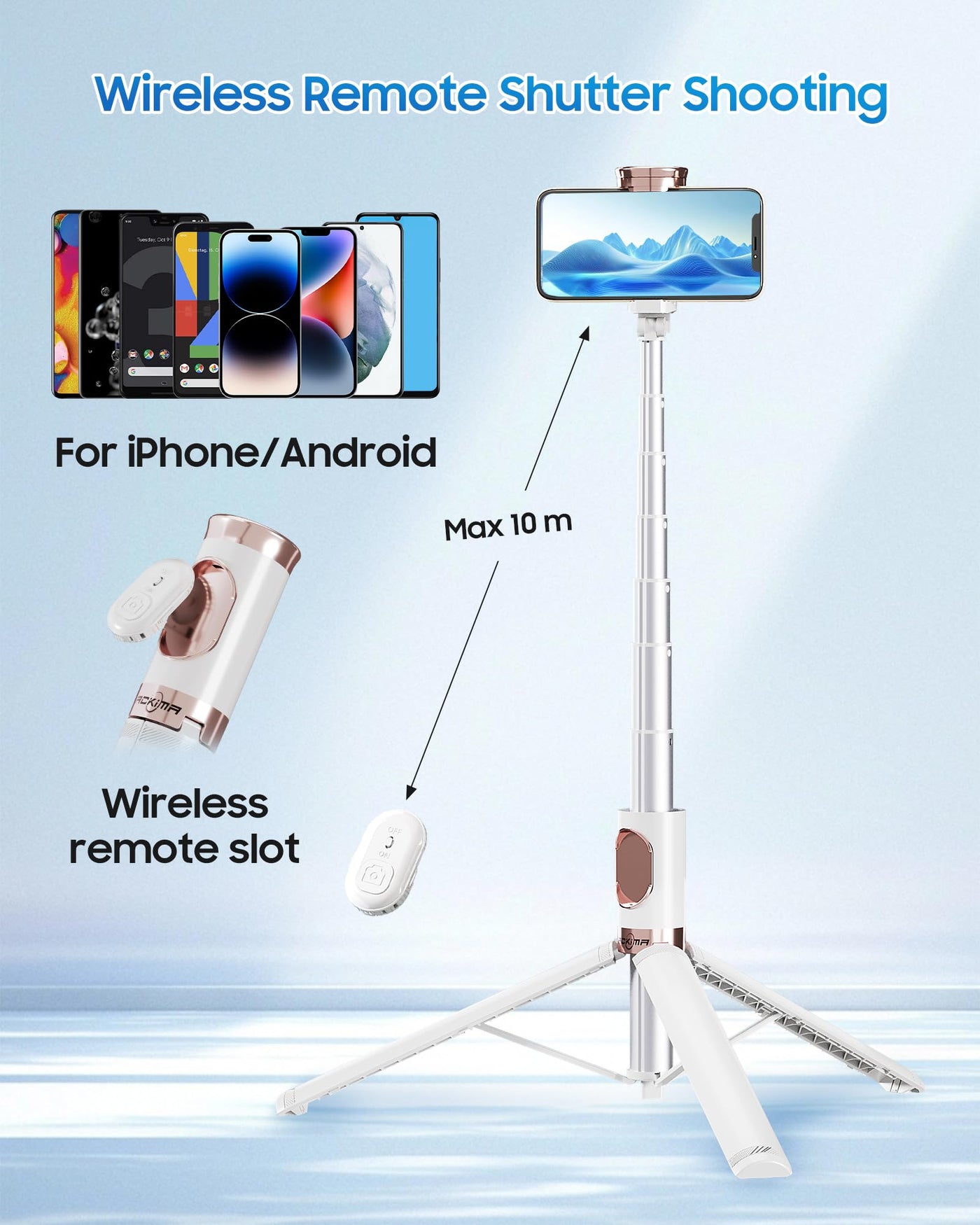 Levate Your Content Creation Game With The Ackima Selfie Stick Tripod, A Perfect Blend Of Classic And Modern Design Elements. This All-In-One Innovation Is A Must-Have For Personal Content Creators, Offering A Stylish Solution That Easily Folds To A Compact Size Of 12.8 Inches, Fitting Seamlessly Into Your Backpack For On-The-Go Convenience.Crafted With Upgraded Aluminum Alloy Telescopic Rod, This Selfie Stick Tripod Boasts A Height Range Of 12.8 To 67 Inches, Providing Versatility For Various Filming Scenarios. The One-Button Pop-Up Design Ensures Quick Setup, While The Stable Base Support With A High-Quality Zinc Alloy Connecting Rod And Silicone Non-Slip Foot Pad Guarantees A Secure Shooting Experience.Equipped With A Detachable Wireless Remote Control, This Selfie Stick Tripod Extends Your Shooting Range Up To 33 Feet, Breaking Distance Barriers For Dynamic Shots. The 360 Rotating Phone Holder Allows For Easy Adjustment Of Your Cellphone, Both Vertically And Horizontally, Accommodating Smartphones 2.6''-3.7'' In Width To Capture The Perfect Angle For Your Videos.Whether You'Re A Travel Enthusiast, Content Creator, Or Into Tiktok Live Streaming, The Ackima Selfie Stick Tripod Is Your Ultimate Companion For Seamless Video Recording, Offering Portability, Flexibility, And Superior Functionality For All Your Filming Needs. Elevate Your Content Creation Experience With This Versatile And Innovative Accessory.
