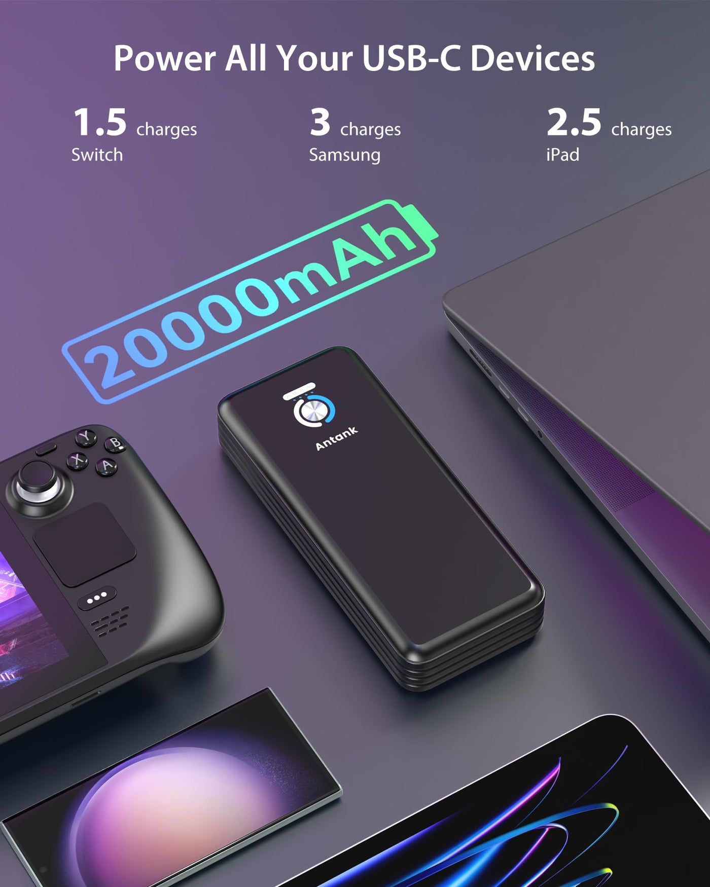 Antank Magnetic Power Bank Compatible With Steam Deck, 20000Mah 45W Pd Fast 3.0 Charging Portable Battery Bank, External Battery Pack With Removable Magnetic Back Mount & Dual Usb C Cable