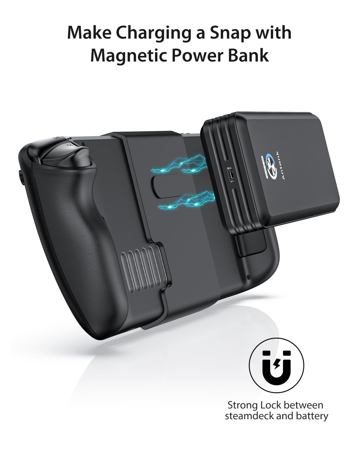 1. First 45W 20000 Mah Detechable Magnetic Attached Power Bank Specifically Designed For Steam Deck Compact, Detachable Magnetic Back Mount, High-Speed 20000 Mah Play Longer, Enjoy More Compatible With Steam Deck Battery Power Bank For Steam Deck Portable Charger Magnetic Battery Pack Stream Deck Power Backup External Extra Battery Bank Pack Battery Replacement Extended Battery Charging Case Accessories Laptop Powerbank Pd 45W 65W 100W Watt For Macbook Pro Power Bank. 2.Compact And Lightweight Compact Body Takes No Disturbance During Gaming And Lightweight Design Allows To Easily Travel. 3.Detachable Magnetic Back Mount Design Detachable Magnetic Back Mount Design Lets You Easily Slide To Detach Or Lock For Charging 4.High Capacity 20000 Mah Capacity Extends 1.5 Times Of Gaming Time. 5.High-Speed Charging And Recharging Built-In Type-C Cable And Type-C Port Provide High-Speed Charging And Recharging Simultaneously. 6.Universal Compatibility Smart Technology Supports Of 5V/3A, 9V/3A, 12V/3A, 15/3A, 20V/2.25A Charging Current To All Usb-C Port Smartphones And Tablets, Eg: For Ipad Pro Air Mini, For Samsung Galaxy Note. 7.Superior Safety Exclusive Multi Protect Technology Ensures Total Protection For You And Your Devices. Short-Circuit Protection, Over-Voltage Protection, Over-Current Protection, Over-Charge Protection, High-Temperature Protection, Smart Current Matching, Automatic Plug-In & Plug-Out Identification, Current Line Compensation Are All Available For This Power Bank. 8.Compatible With Steam Deck Adapter Built-In Type-C Drp Technology Supports Recharging By For Steam Deck Ac Adapter.