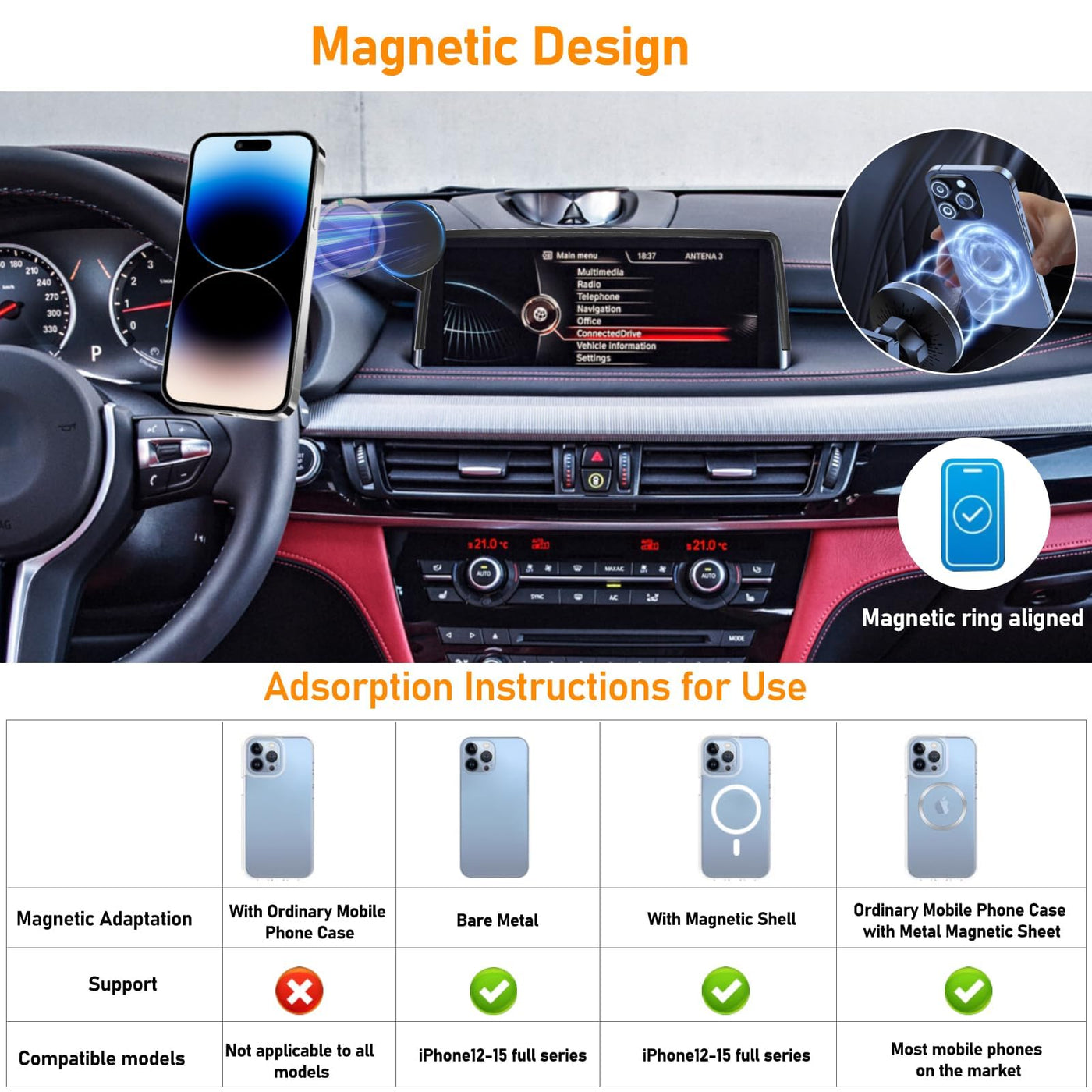 Apeser Compatible With Bmw X5 Magnetic Phone Holder Mount,Compatible With Bmw X6 Car Cell Phone Mounted Anti-Shake Phone Holder Mount--360 Degree Rotation Iphone Holder,Mounted Over Dashboard Near Air Vent,Compatible With Bmw F15 Phone Mount Holdercompatible Vehicles:Compatible With Bmw X5 F15 Phone Mount 2014Compatible With Bmw X5 F15 Phone Mount 2015Compatible With Bmw X5 F15 Phone Mount 2016Compatible With Bmw X5 F15 Phone Mount 2017Compatible With Bmw X5 F15 Phone Mount 2018Compatible With Bmw X6 F16 Phone Holder 2015Compatible With Bmw X6 F16 Phone Holder 2016Compatible With Bmw X6 F16 Phone Holder 2017Compatible With Bmw X6 F16 Phone Holder 2018Compatible With Bmw X6 F16 Phone Holder 2019High-Quality Material,Unique Design:Specially Designed For Vehicles,100% Fits.Will Not Effect Any Function Of Your Vehicle.Made Of High-Grad Aluminum Alloy And Abs.Not Only Improves The Quality,But Also Ensures The Long Service Time.Easy To Install And Use.Can Rotate 360,Easily Switch The Phone To Any Angel.One Must-Have Accessories For Hold Your Phone While Driving.Beauty And Practicality Coexist.No Need To Worry About You Phone Will Fall Off.Note:This Car Phone Holder Is Custom Fit For Bmw X5 2014-2018/X6 2015-2019 Only.Please Confirm If It Fits Your Vehicle Before Purchasing.Product Includes:1 Pc Magnetic Phone Holder/Case