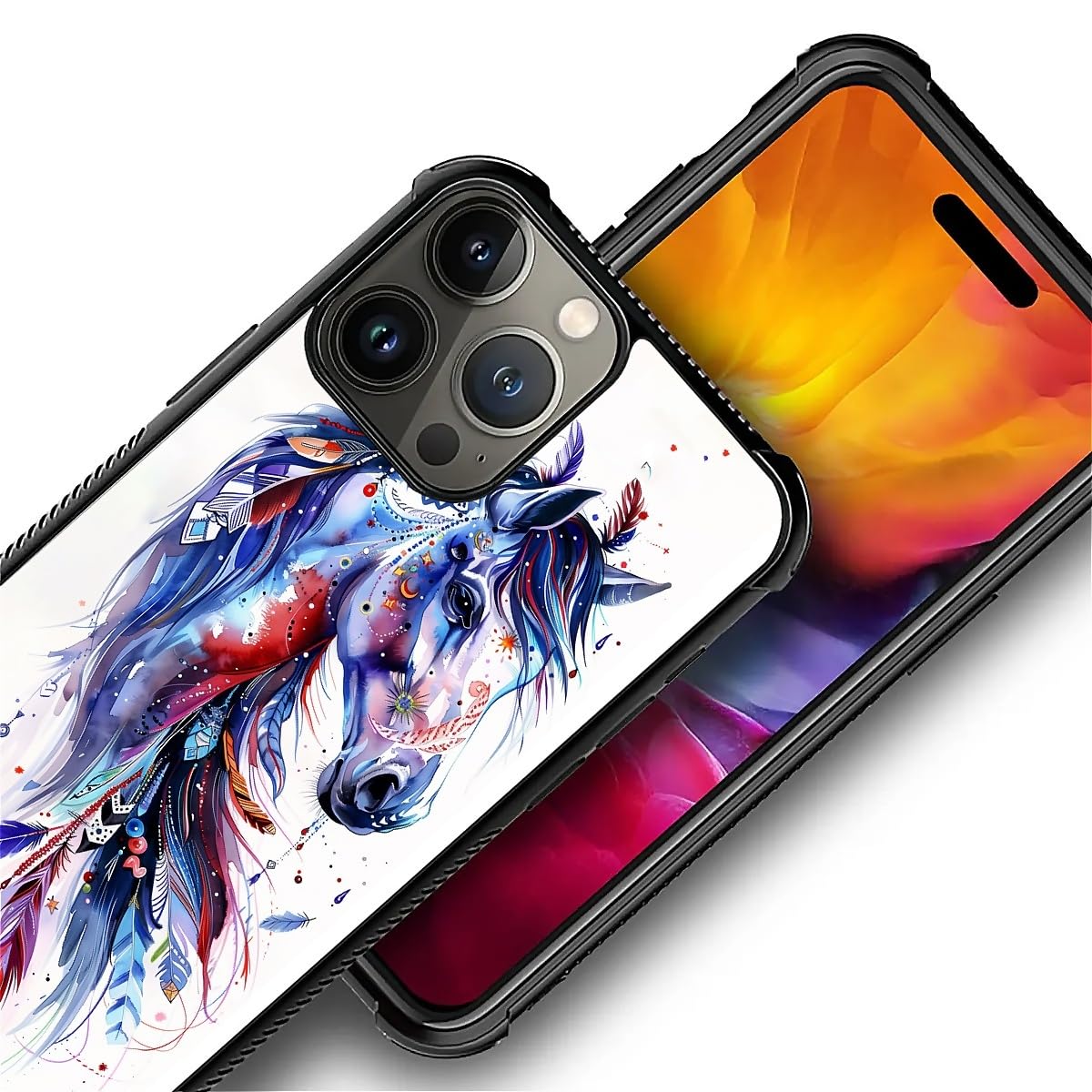 Carloca Compatible With Iphone 16 Pro Case, Drawing Sketch Rainbow Horse Art Fashion Pattern Design For Girl Shockproof Anti-Scr