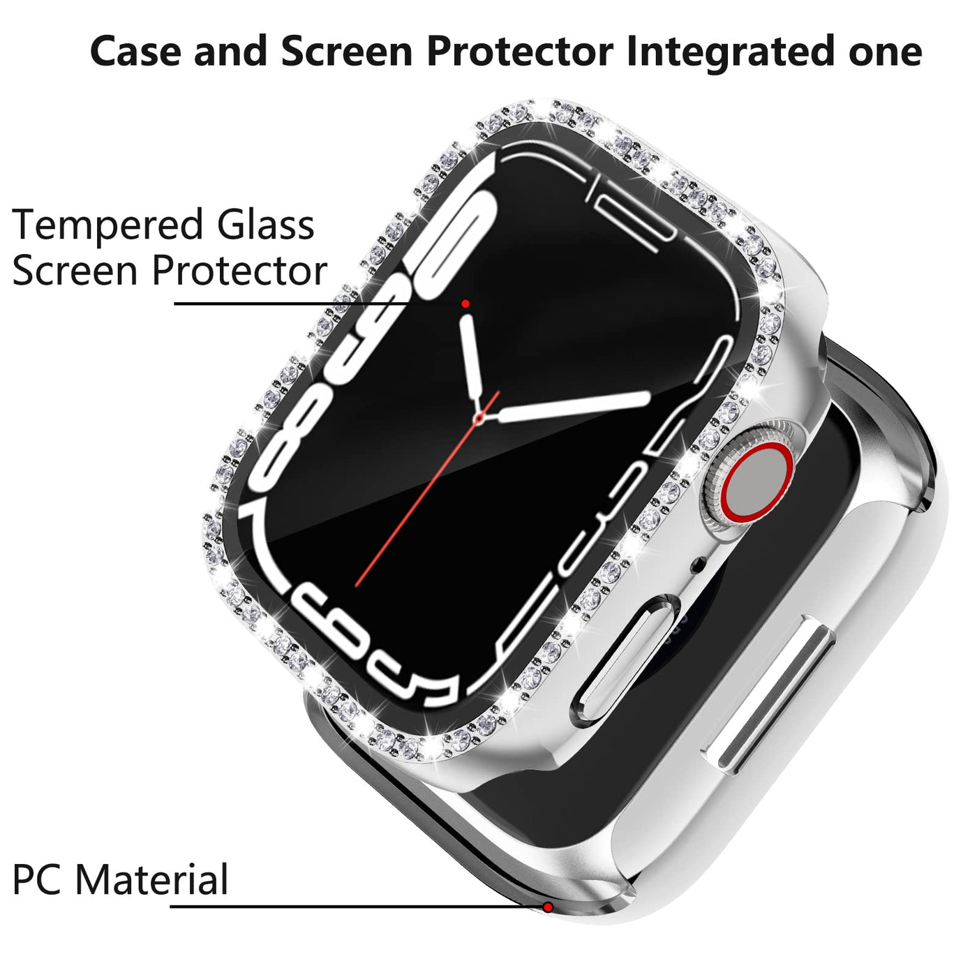 [ Compatible Model]: Compatible With Apple Watch Series 9, Apple Watch Series 8 2022 & Series 7 45Mm, Attention:Using The Screen Protector One At Gym Or Sports Activities May Cause The Moisture, Please Use A Dry Cloth To Clean It. | [Built-In Screen Protector]: Update New Design Diamond Case With Built In Screen Protector. 99.99% Original Touch Sensitivity. Protects The Screen And Edges From Scuffs And Scratches. | [Superior Pc Material]: The Bling Screen Protector Case Is Made Of Hard Pc. No Smell And No Deformation,Make Your Watch Stylish And Durable. Easy To Install, No Need To Take Off Watch Band, You Can Charge Your Watch With Case On. | [Precise Cutout]: Covers Your Watch The Edges Around,All Holes Line Up With The Corresponding Buttons, Speaker, Mic And Sensors, Adding No Bulk To Your Watch.Protect Apple Watch From Scratching, Dropping, Bumping. | [Package And Service:] 2 Pack Diamond Case Compatible With Iwatch 9 8&7 45Mm. Within 24 Hours Quick Reply. Any Quality Related Issues For A Full Refund Or New Replacement Without Return. If You Have Any Problem, Please Contact Us Without Hesitation.