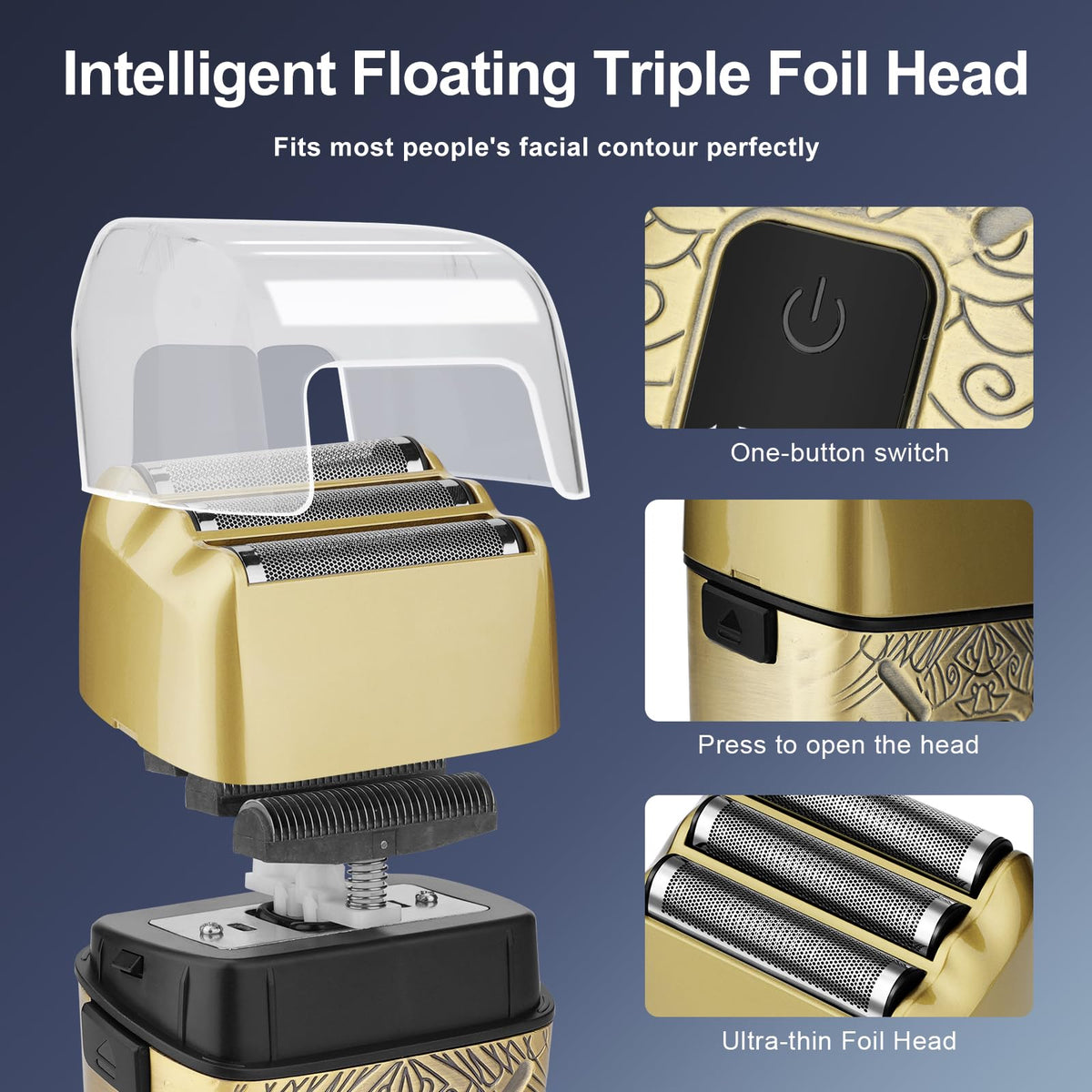 Q: What makes the Dumite Electric Shaver suitable for bald men?A: The Dumite Electric Shaver features a powerful motor and triple foil blades that provide a close shave, making it ideal for maintaining a bald look. Its versatile design allows for efficient head shaving, ensuring a smooth and comfortable experience.