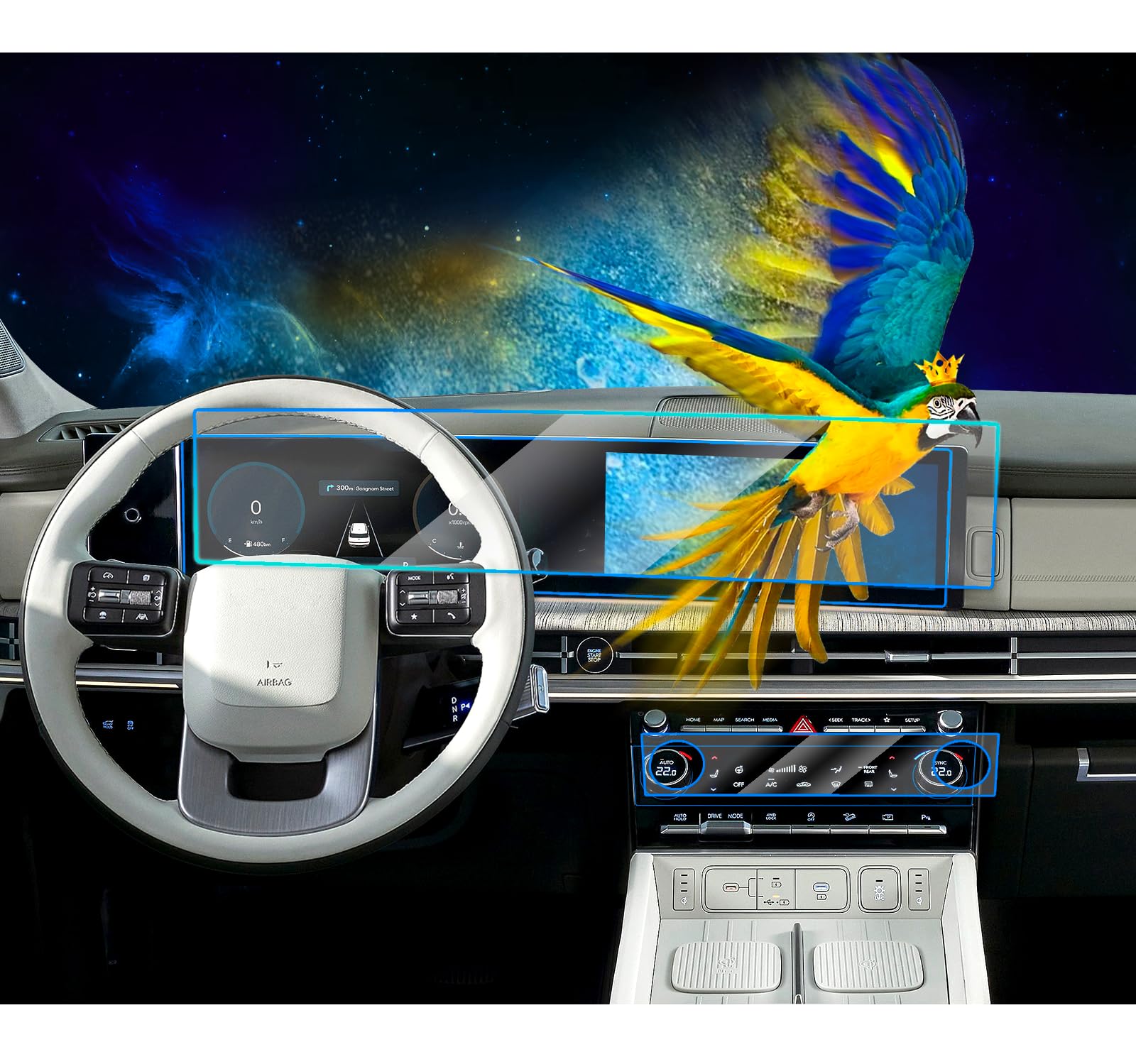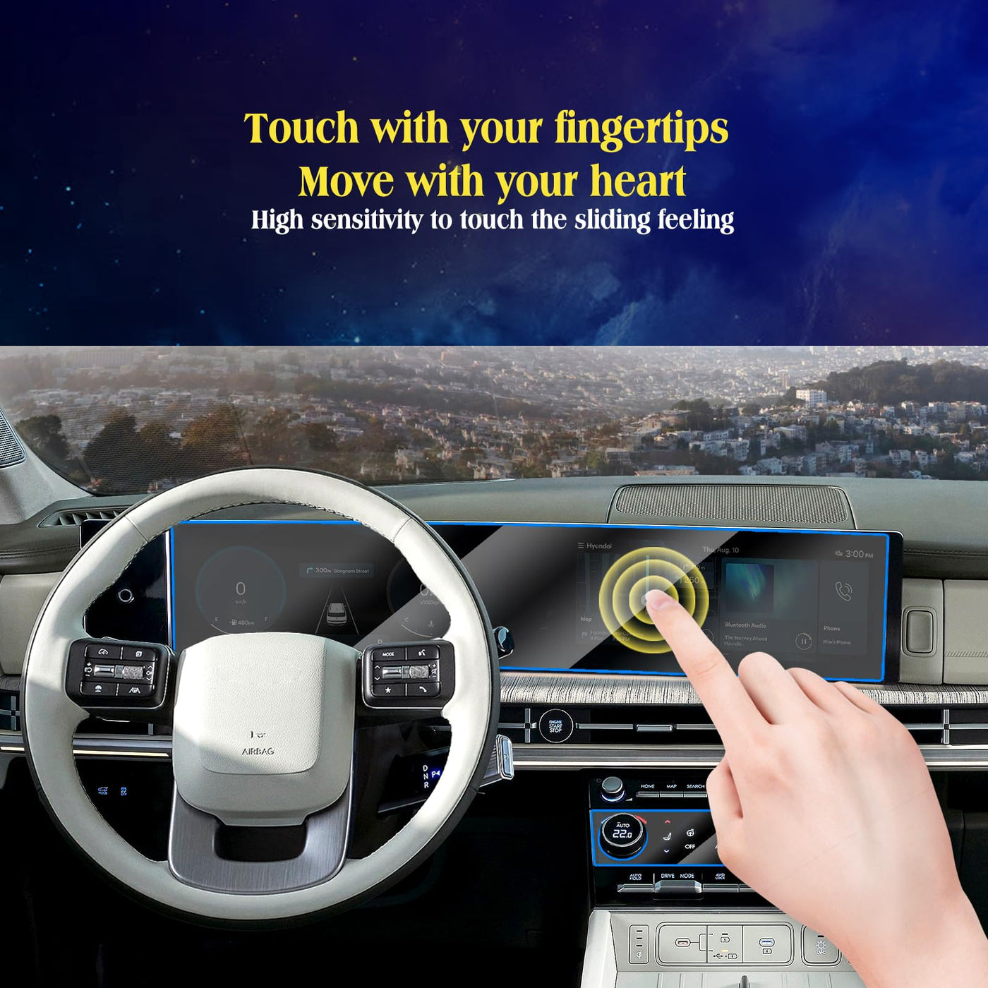 Eueky Screen Protector Compatible With 2024 Hyundai Santa Fe (Hybrid) 12.3-Inch Dual Panoramic Displays; Why Do You Choose Eueky 2024 Hyundai Sante Fe Screen Protector 2024 Hyundai Santa Fe Accessories 2024 Santa Fe Hybrid? 1.Reinstallable: Excellent Adhesion Makes For A Bubble-Free Installation. Spots, Bubbles Or Non-Adhesive Parts During Installation Are Usually Due To The Screen Dust Not Being Wiped Clean. In This Case, You Should Carefully Lift One Corner Slowly First, Do Not Force It To Prevent It From Breaking, Drag The Lower Left And Right Corners With Both Hands To Slowly Lift It Up To The Dust Position And Wipe It Clean, Then Reposition It, Then It Will Automatically Stick To The Screen Again. 2.Screen Protector For 2024 Santa Fe Screen Protector 2024 Santa Fe Hybrid Screen Protector 2024 Car Screen Protective Film Has 2.5D Curvature, Upgraded Explosion-Proof, Perfect Fit, 0.33Mm Thickness, Clearer Original Colour Display, Immediate Response, More Sensitive And Smooth Touch. 3.2024 Hyundai Sante Fe Screen Protector 2024 Hyundai Santa Fe Accessories 2024 Santa Fe Hybrid About The Package: 2 Soft Screen Protector, Dry/Wet Wipe, Auxiliary Sticker, Dust Removal Sticker. To Ensure Your Shopping Experience, Please Make Sure That Your Model Matches Before Purchase. Note: 1. Before You Order, Please Make Sure That Your Touch Screen Size Is Compatible With The Protector. 2. Please Ensure That Your Screen Is Original And Not Assembled. Installation Tips 1. Wash Your Hands Thoroughly And Keep Them Clean And Dry. 2. Clean Your Screen With A Damp Rag. 3. Dry The Screen Without Leaving Any Residue. 4. Remove Any Dust From The Screen With The Sticker Provided, Align The Protective Film With The Screen And Remove The Film From Its Back. 5.Peel Off The Protective Film And Place The Sticky Side On The Screen.