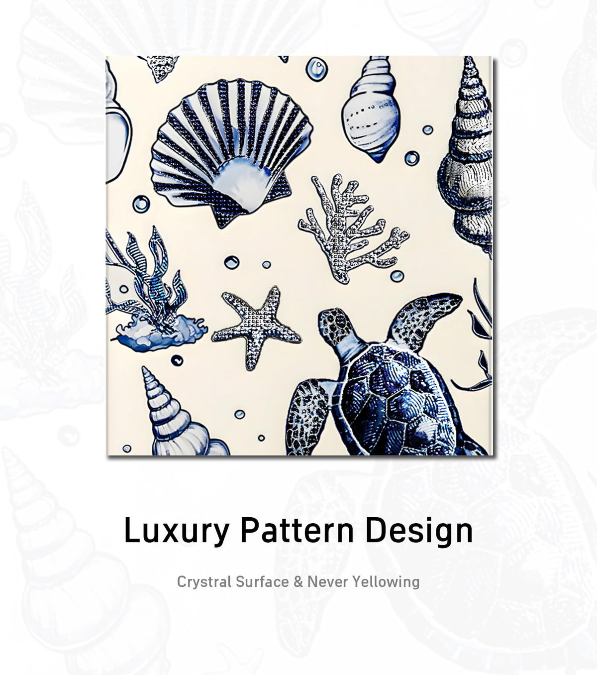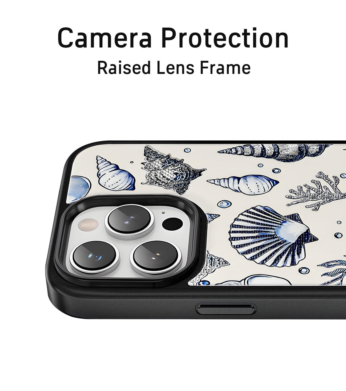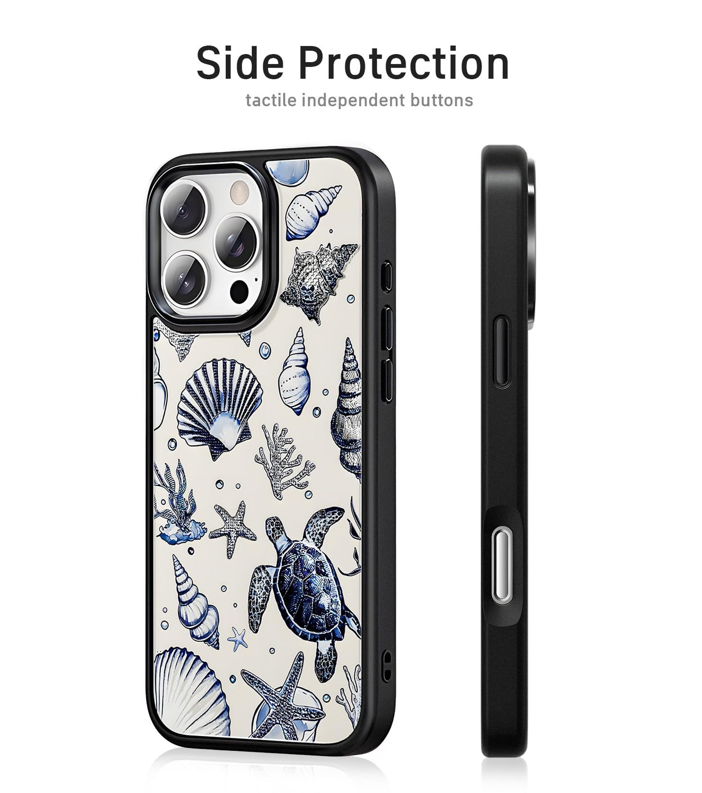 Fewgey Crystal Glass Phone Case For Iphone 16 Compatible With Magsafe, Summer Sea Ocean Beach Turtle Shell Conch Starfish Design