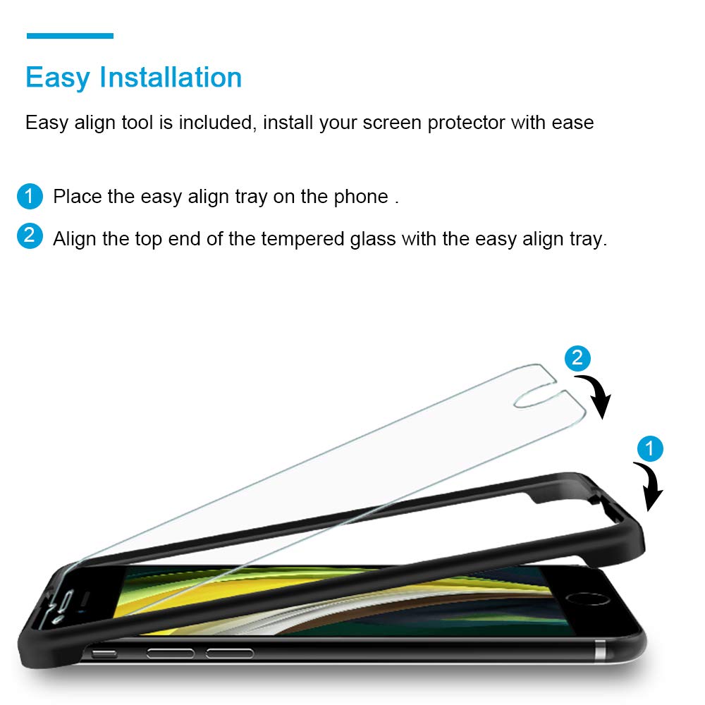 Hatoshi 3 Pack Screen Protector Designed For Iphone Se 2022 (3Rd Gen), Iphone Se 2020 (2Nd Gen), Iphone 8/7/6, 4.7 Inch 9H Hd Tempered Glass Film, Easy Installation Alignment Tray Case Friendly