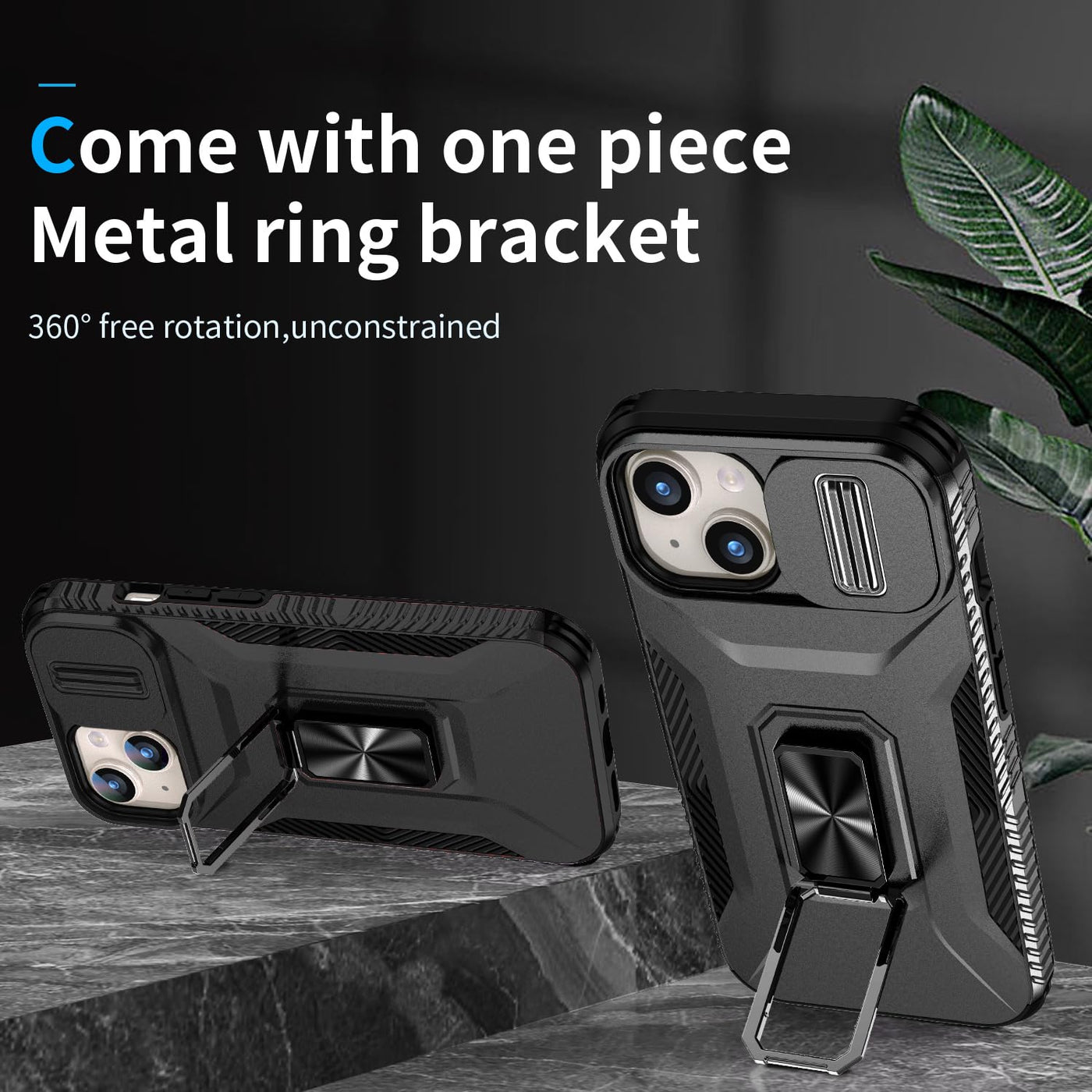 Product Description: ??Made From Pc And Silicone. It Is Sturdy, Rugged, Scratch-Resistant Secure Back Case Dual Layers Support A Full Body Protective For Shockproof. Raised Lip Around The Fingerprint And Camera To Avoid Scratches Or Damage. Two Viewing Angle Kickstand Design Provide The Convenience Of Watching Video And Chatting. ??Case With Camera Cover & Kickstand, Slide Lens Protection + 360 Rotate Ring Stand, Impact-Resistant, Shockproof, Protective Bumper, Phone Case For Iphone 15 (6.1 Inch) ??This Built-In Metal Ring Stand Can Rotate 360, Easy To Rotate And Sturdy On The Case, Gives You The Convenience To Watch Videos And Movies Hands-Free With Desired Comfort And Stability. It Also Can Be Attached To The Magnetic Car Holder. It Is Convenient For You To Navigate The Route When Driving. ??His Phone Cover Made Of Shockproof High Grade Tpu And Pc Materials. Pass 16Ft Drop Test. Military Grade Protective Phone Case With Air Cushions Technology For Anti-Shock/Anti-Scratch/Anti-Bumps. Covers The All Corners Of Your Phone With Full Protection. ??Special Reminder: This Phone Case Does Not Support Wireless Charging. When You Want To Charge Wirelessly, Please Remove The Phone Case